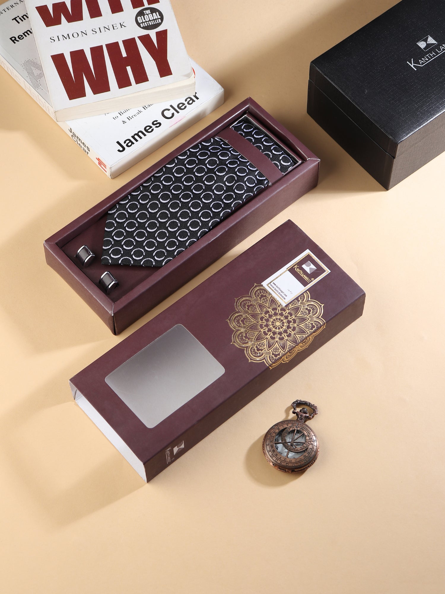 Upgrade your formal collection with the Kanthlangot Black Circle Pattern 3-Piece Men’s Accessory Set, designed to make a bold yet refined statement at any formal event.