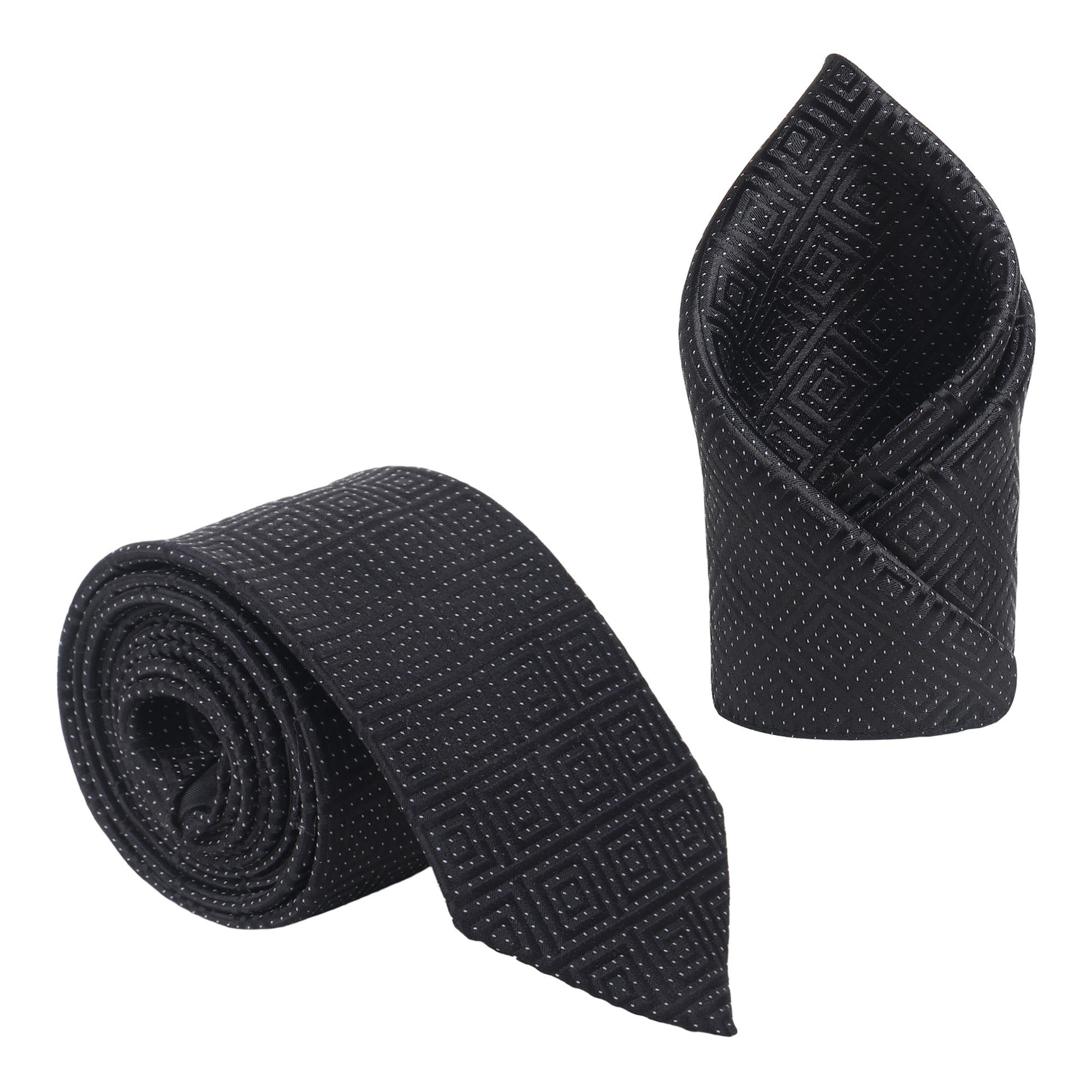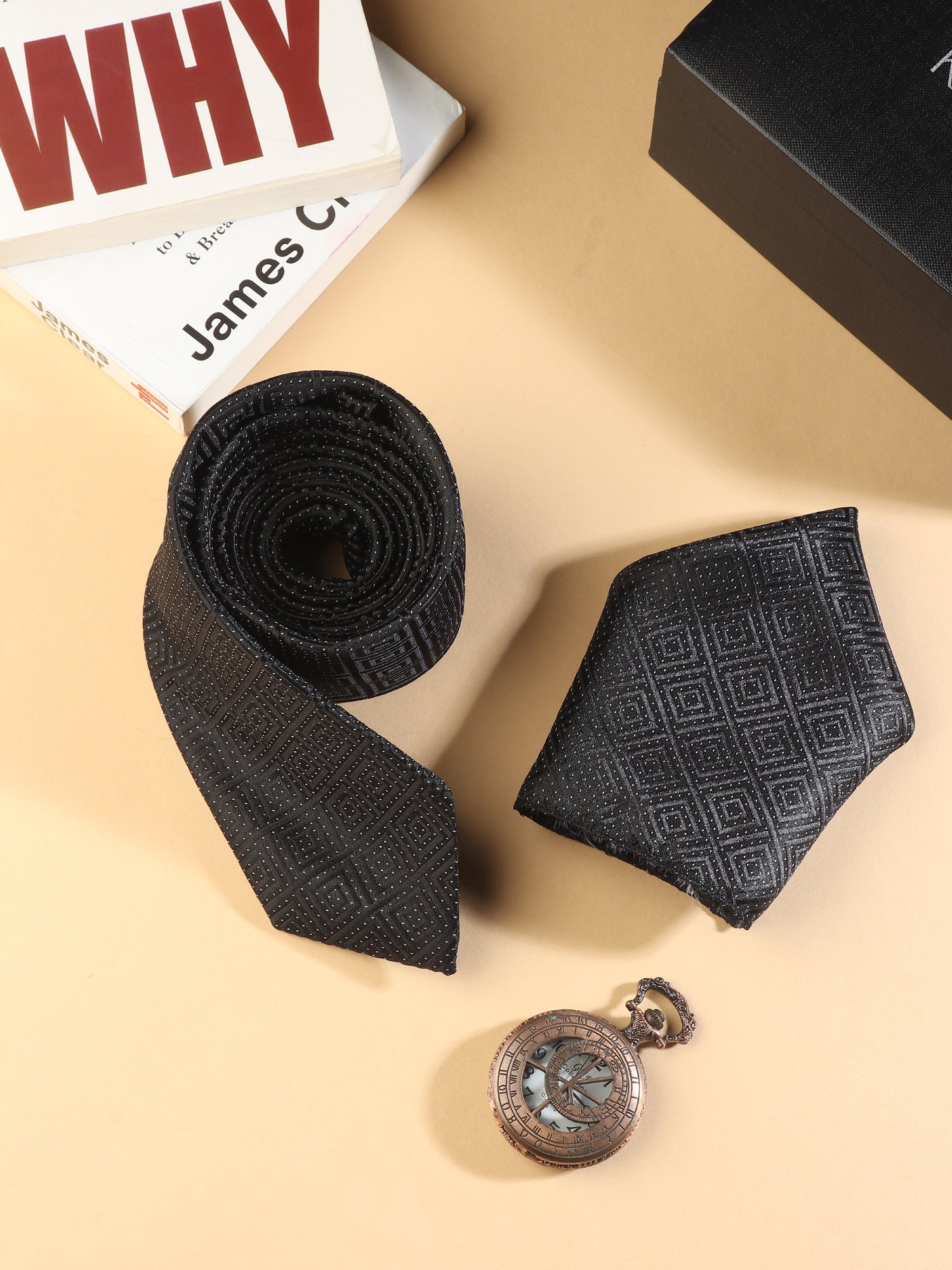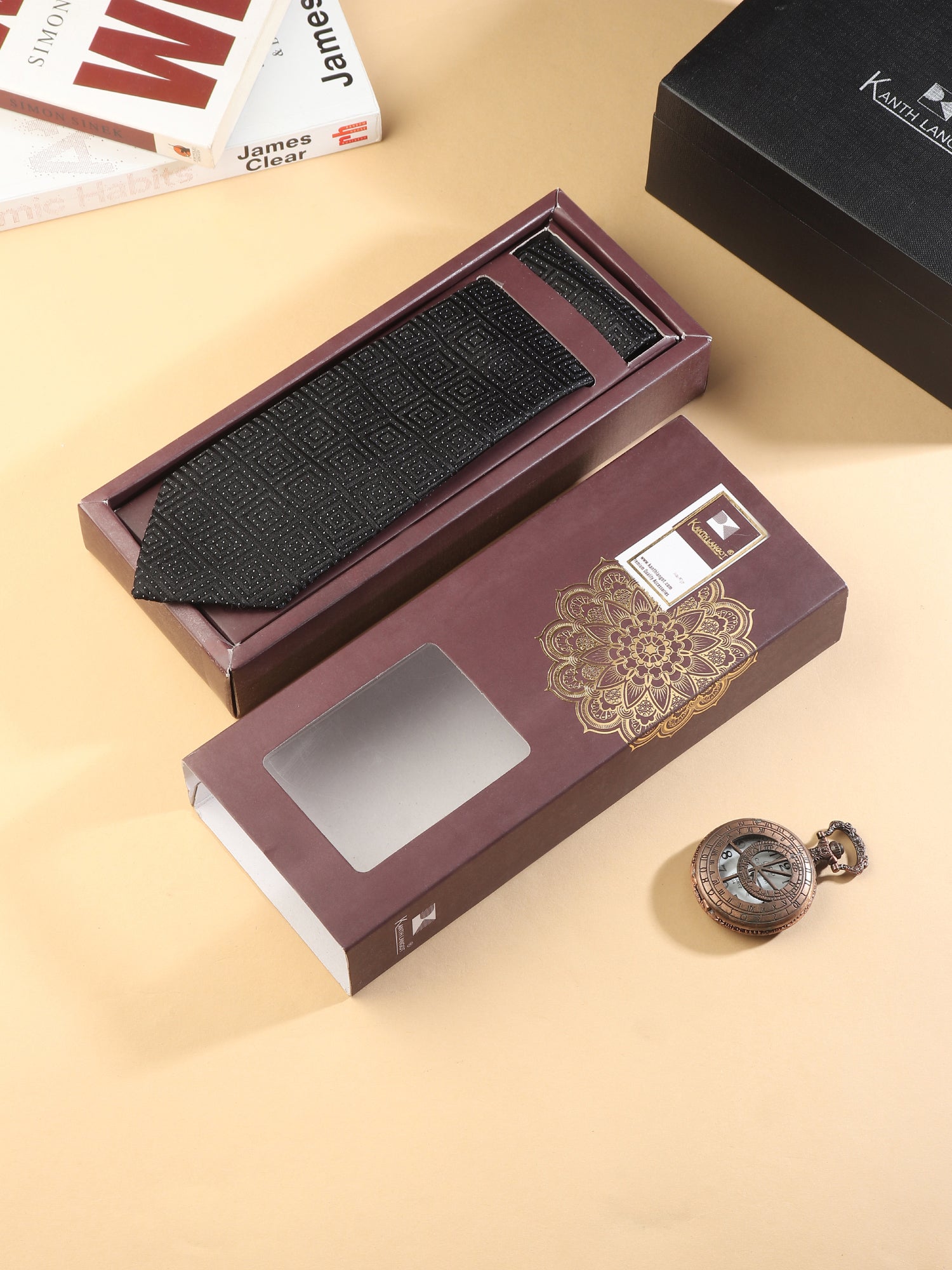 Kanthlangot Black Geometric Necktie & Pocket Square Set