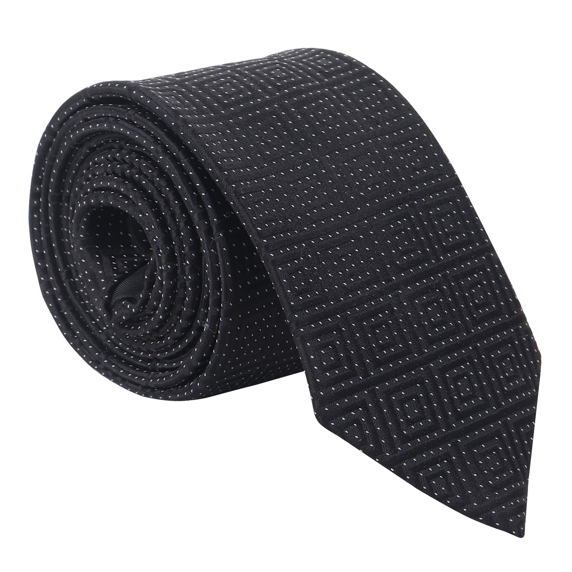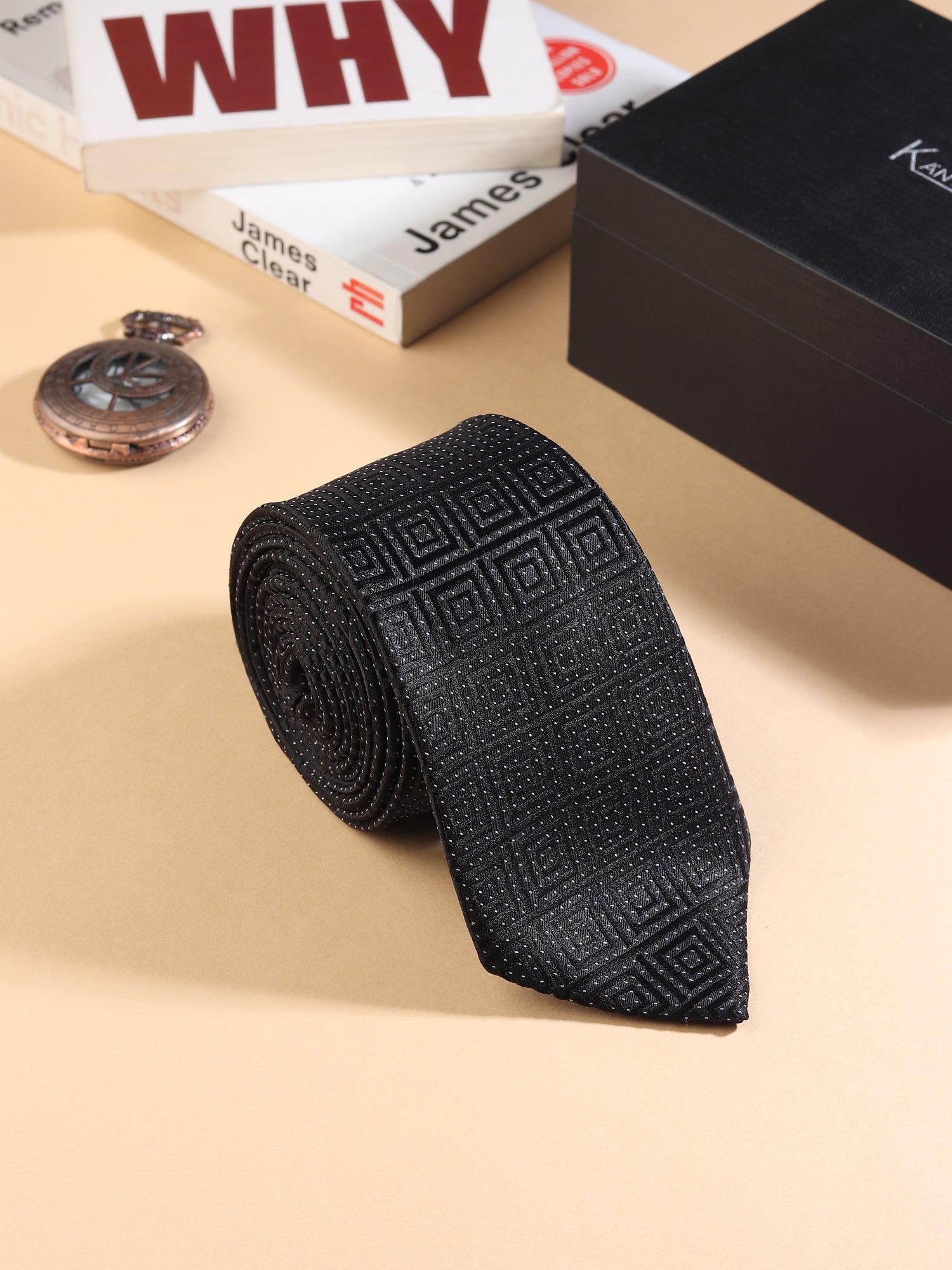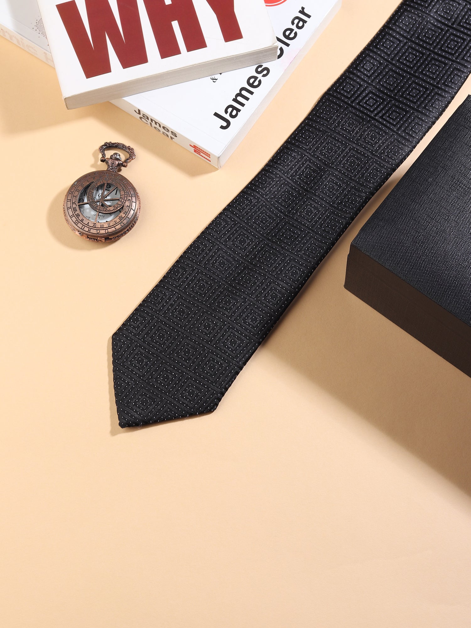Kanthlangot Black Geometric Necktie & Pocket Square Set