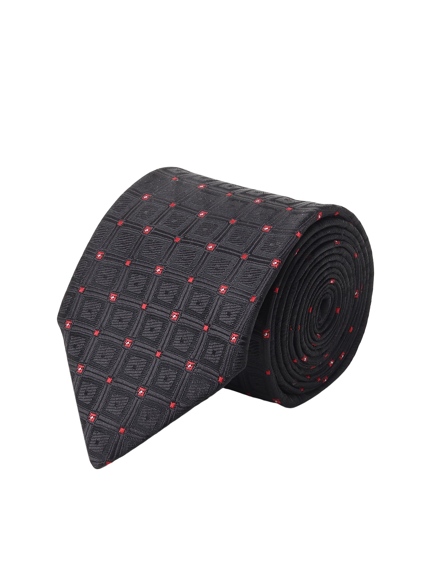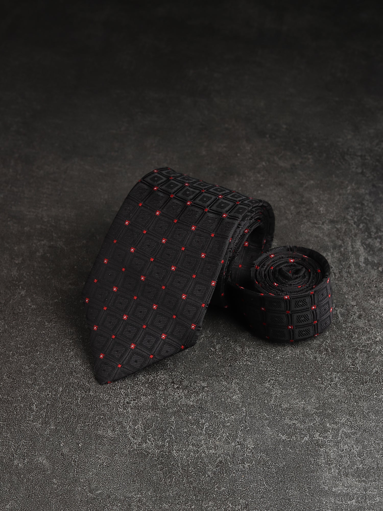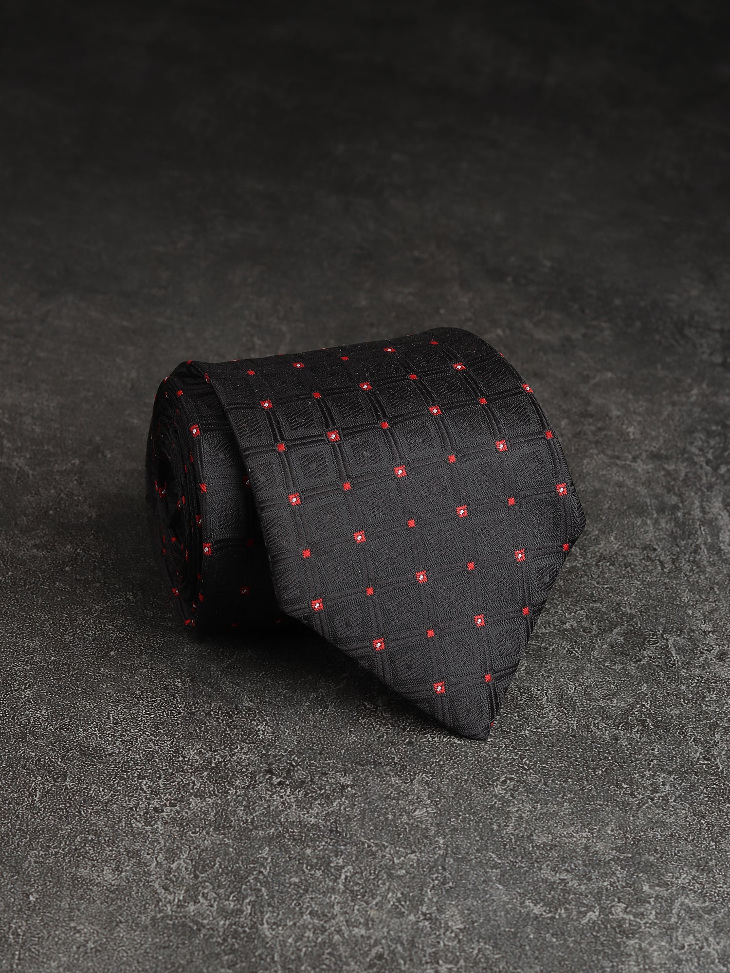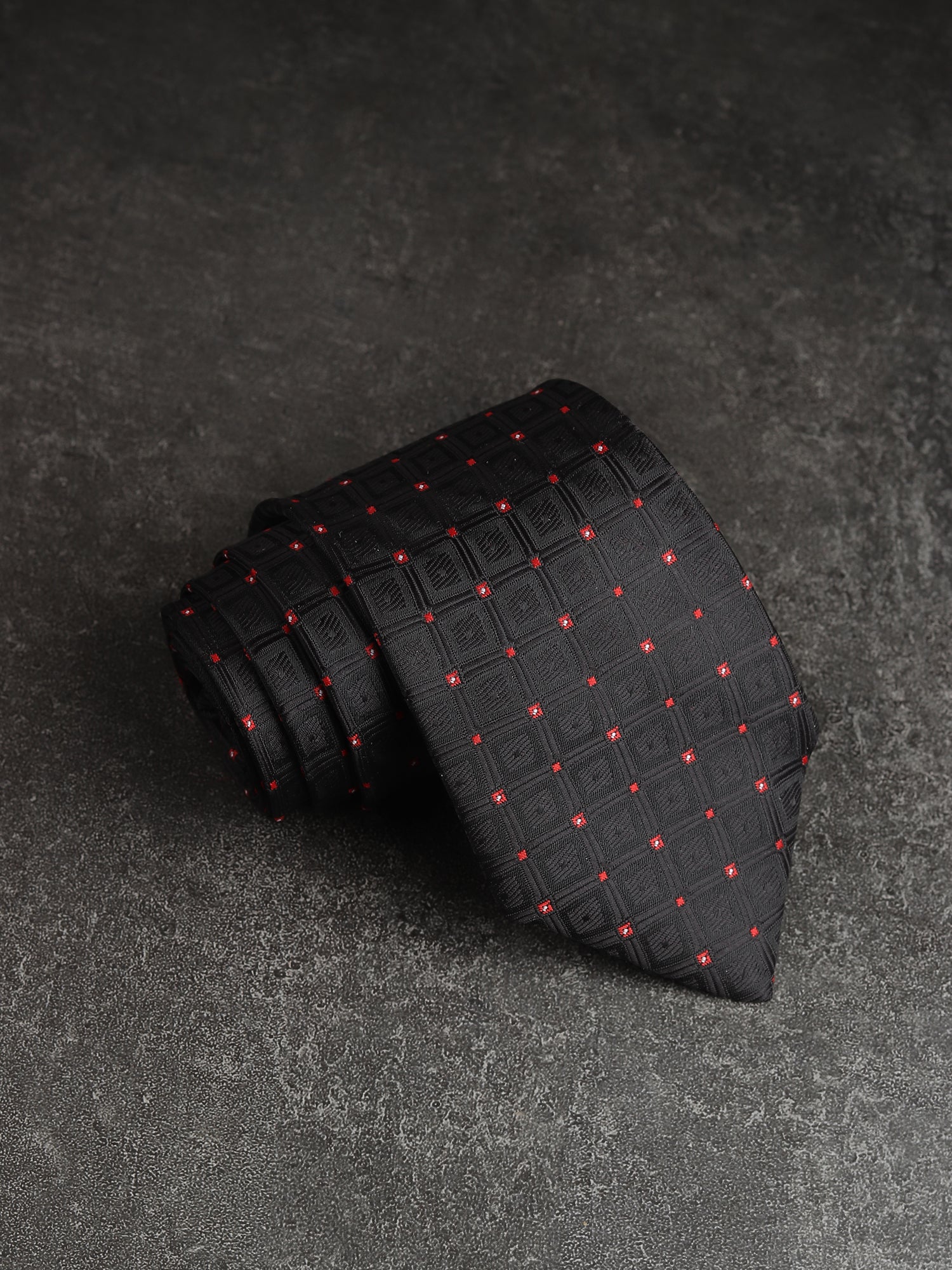 Made from premium jacquard fabric, this necktie offers a rich texture and superior craftsmanship that exudes luxury. The fine detailing of the grid layout, complemented by pops of red and white, adds a subtle yet striking element, making it ideal for formal events, business meetings, or special occasions.