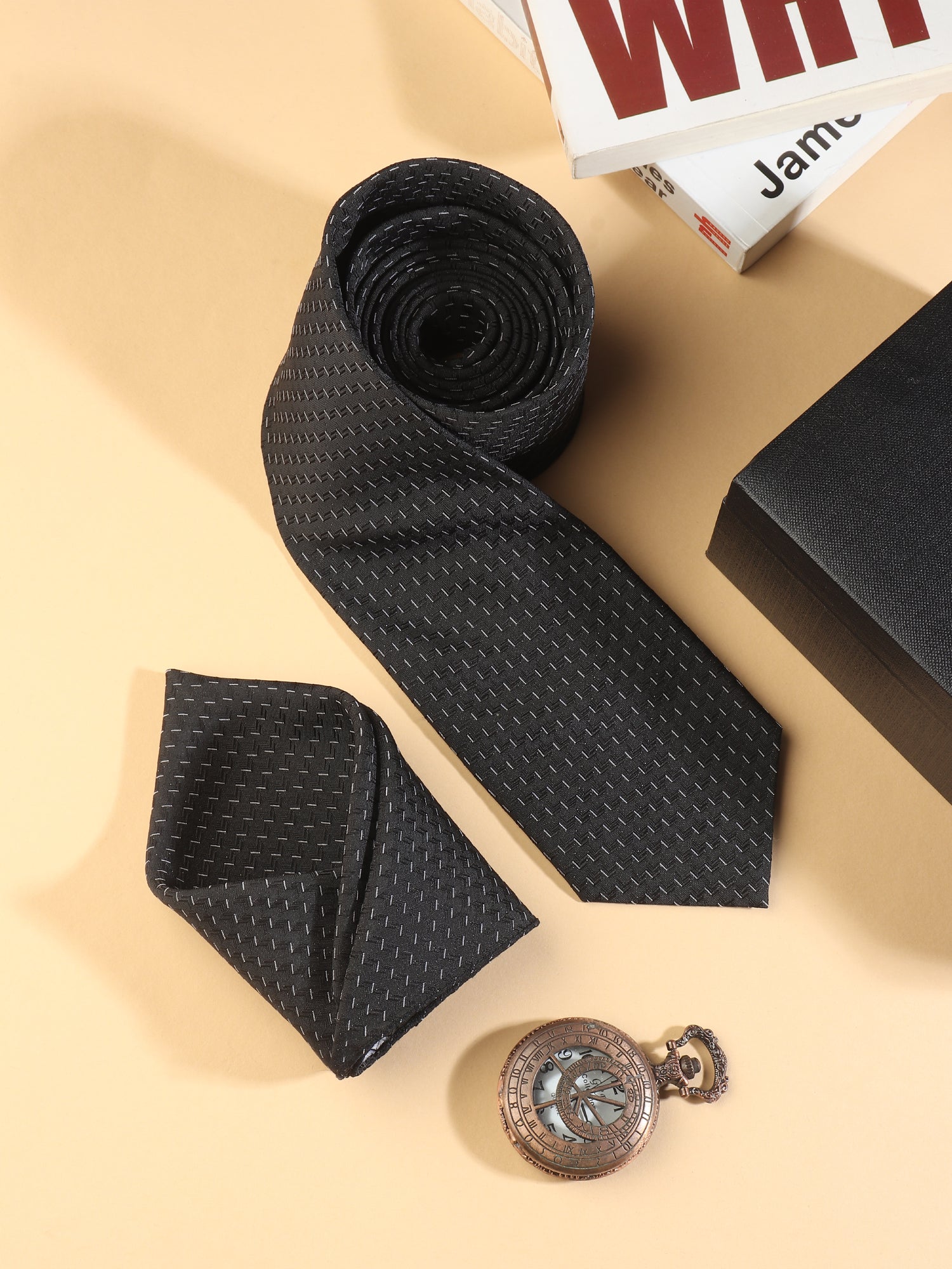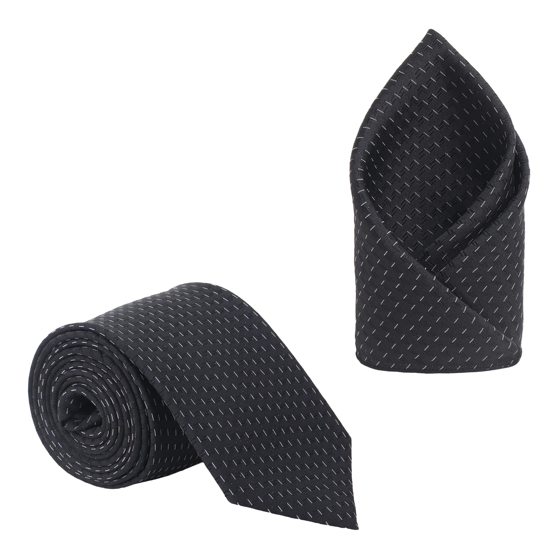 Kanthlangot Black Micro Dash Necktie & Pocket Square Set