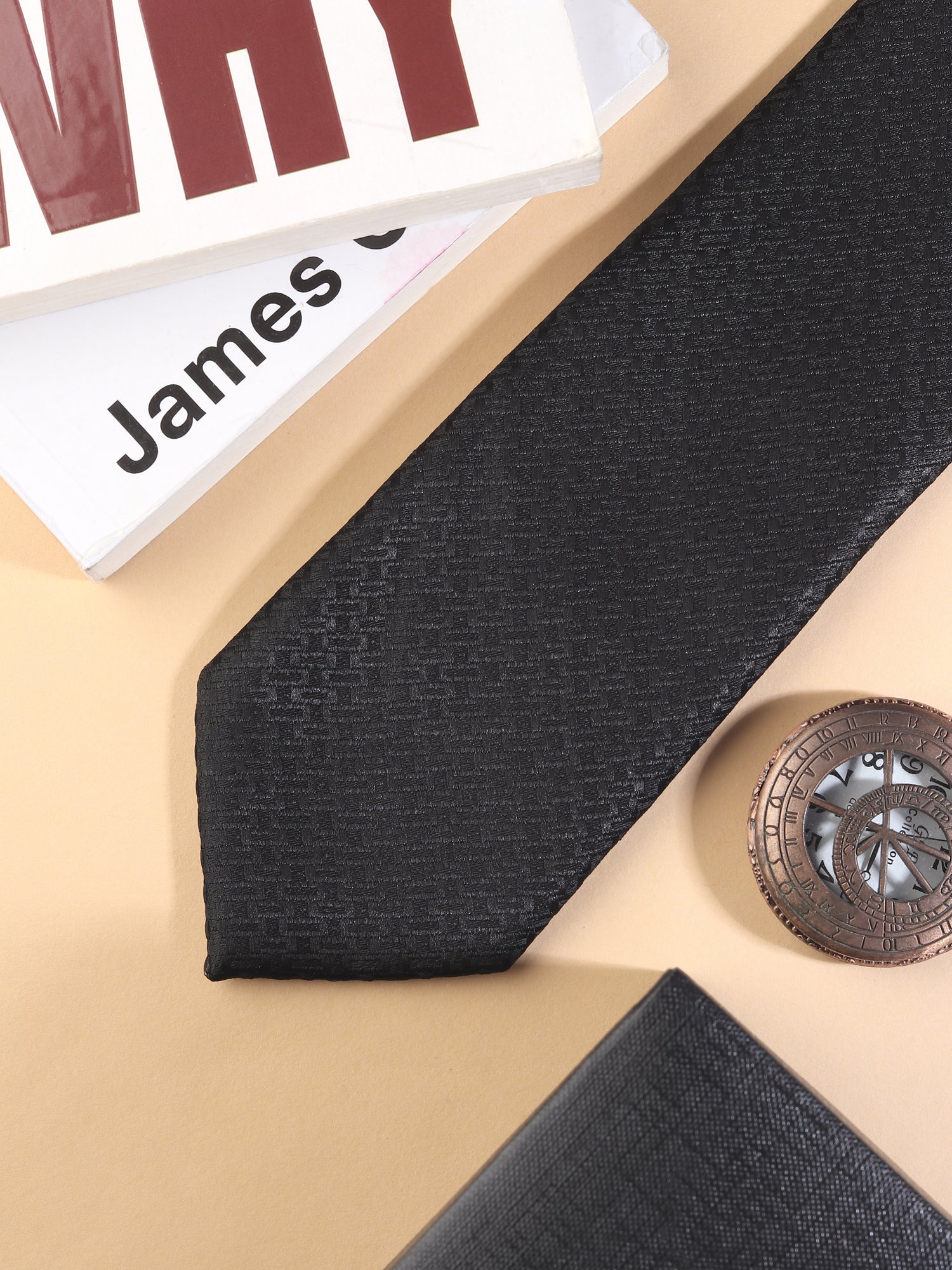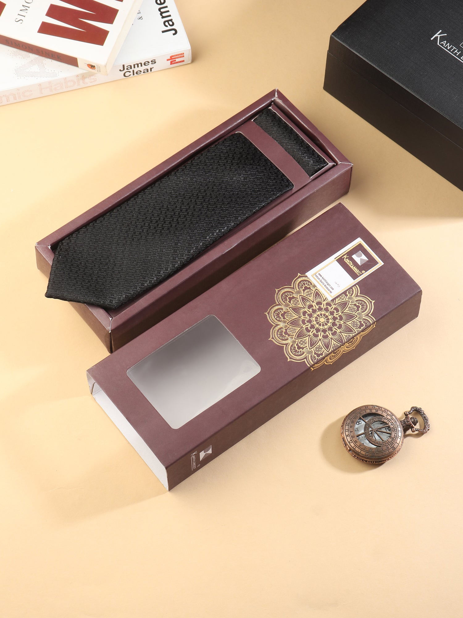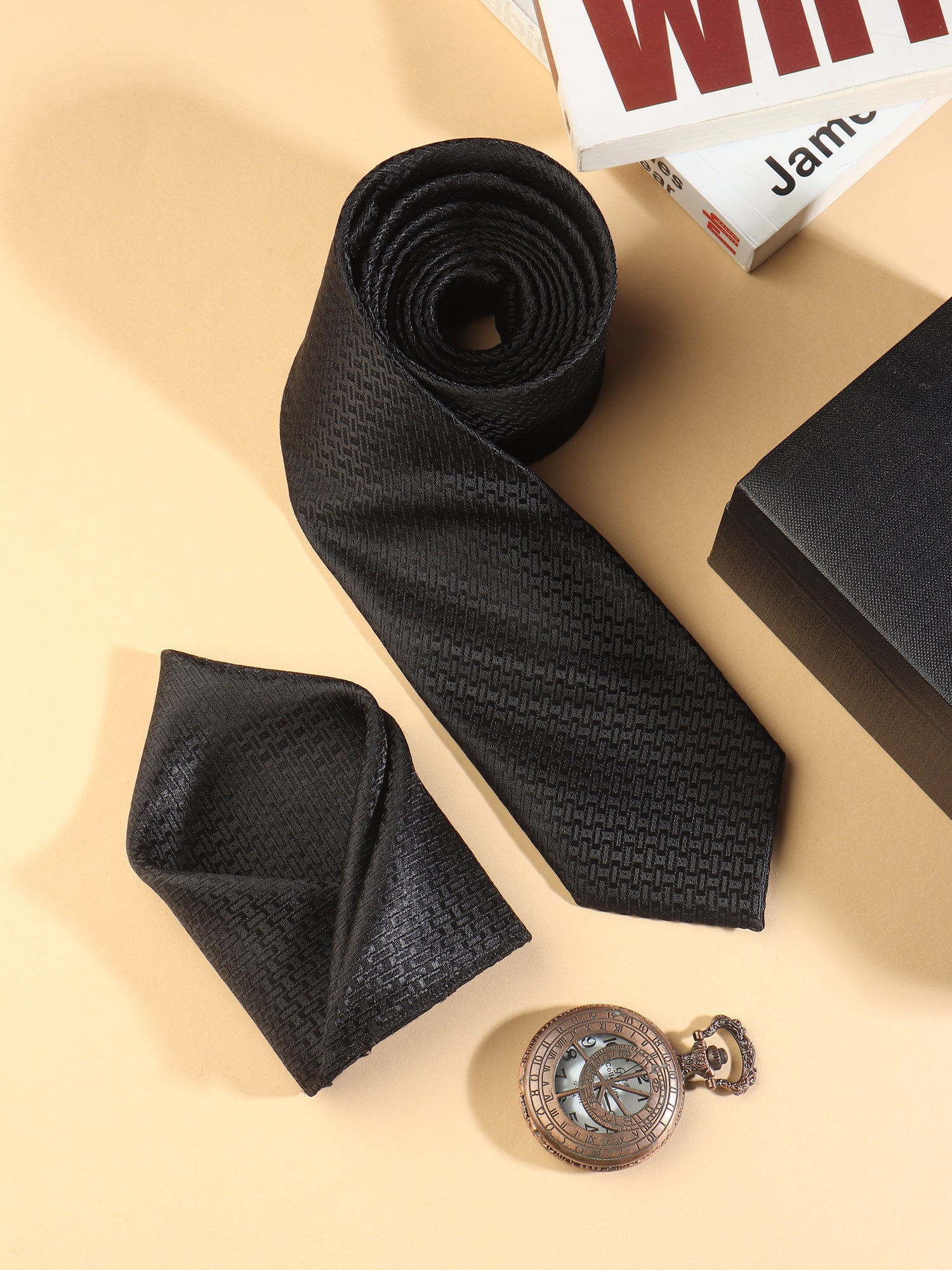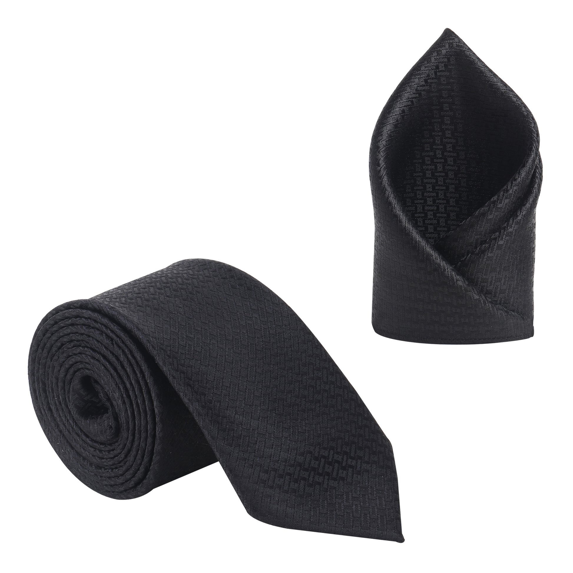Kanthlangot Black Textured Necktie & Pocket Square Set