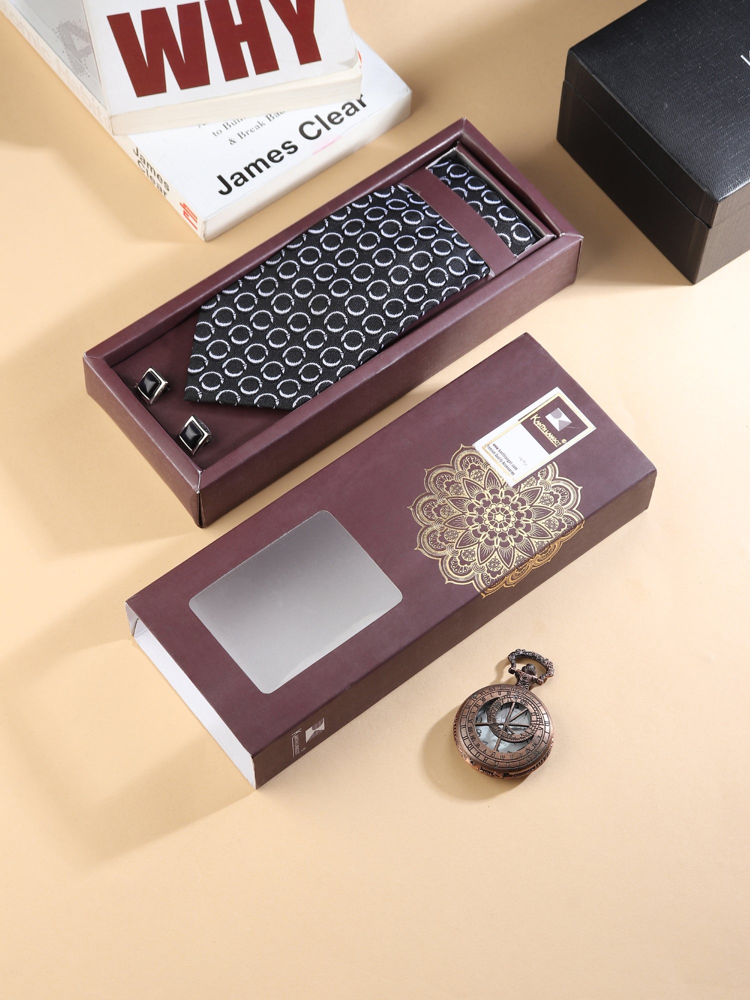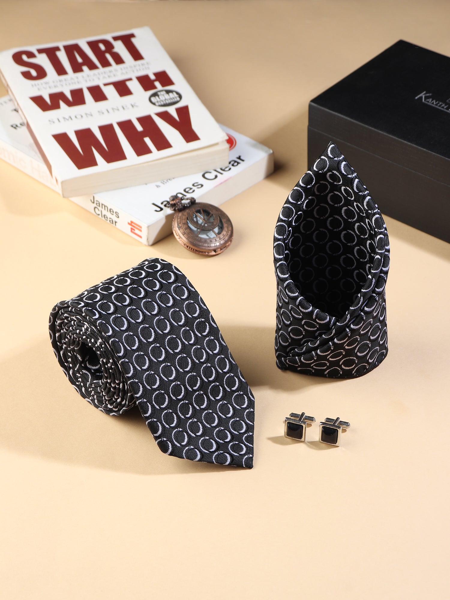 Refine your formal look with the Kanthlangot Black Circle Pattern 3-Piece Men’s Accessory Set, thoughtfully designed to balance elegance and simplicity.