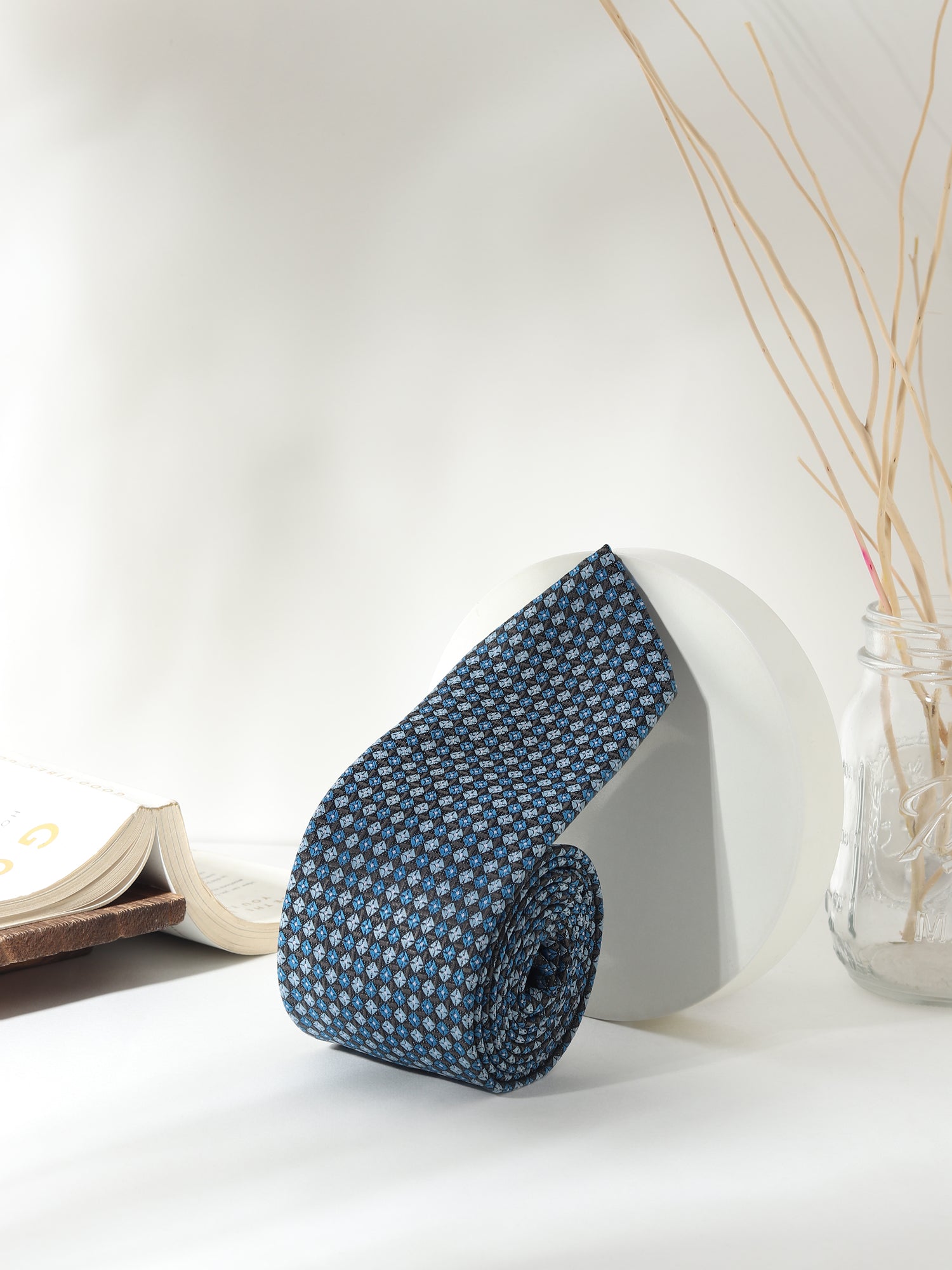 1 Necktie (3-inch width) – Blue and black micro-check pattern