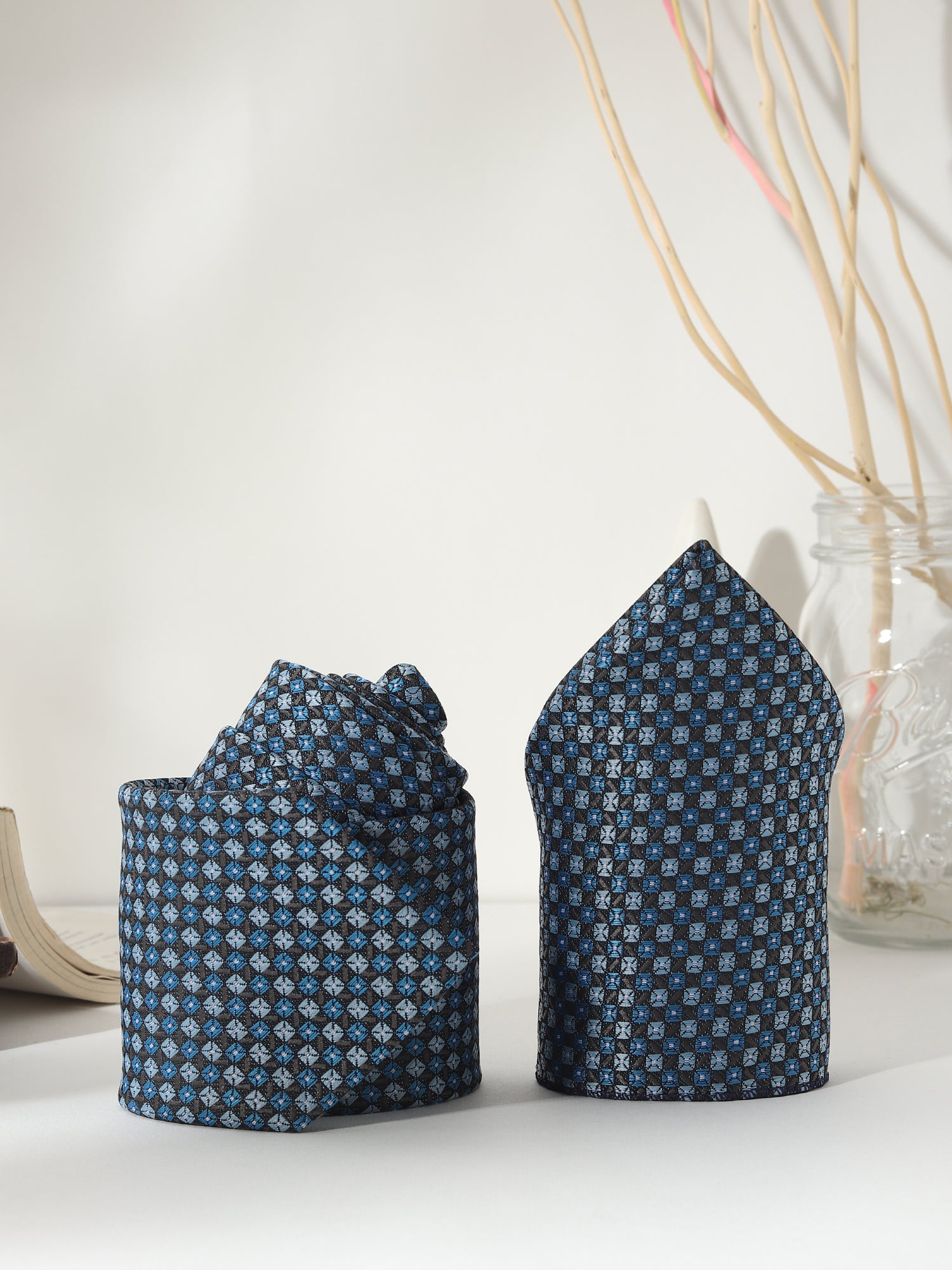 Turn heads with the Kanthlangot Blue Checkered Necktie Gift Set, a refined ensemble crafted for elegance and statement dressing. This 4-piece gift set includes: