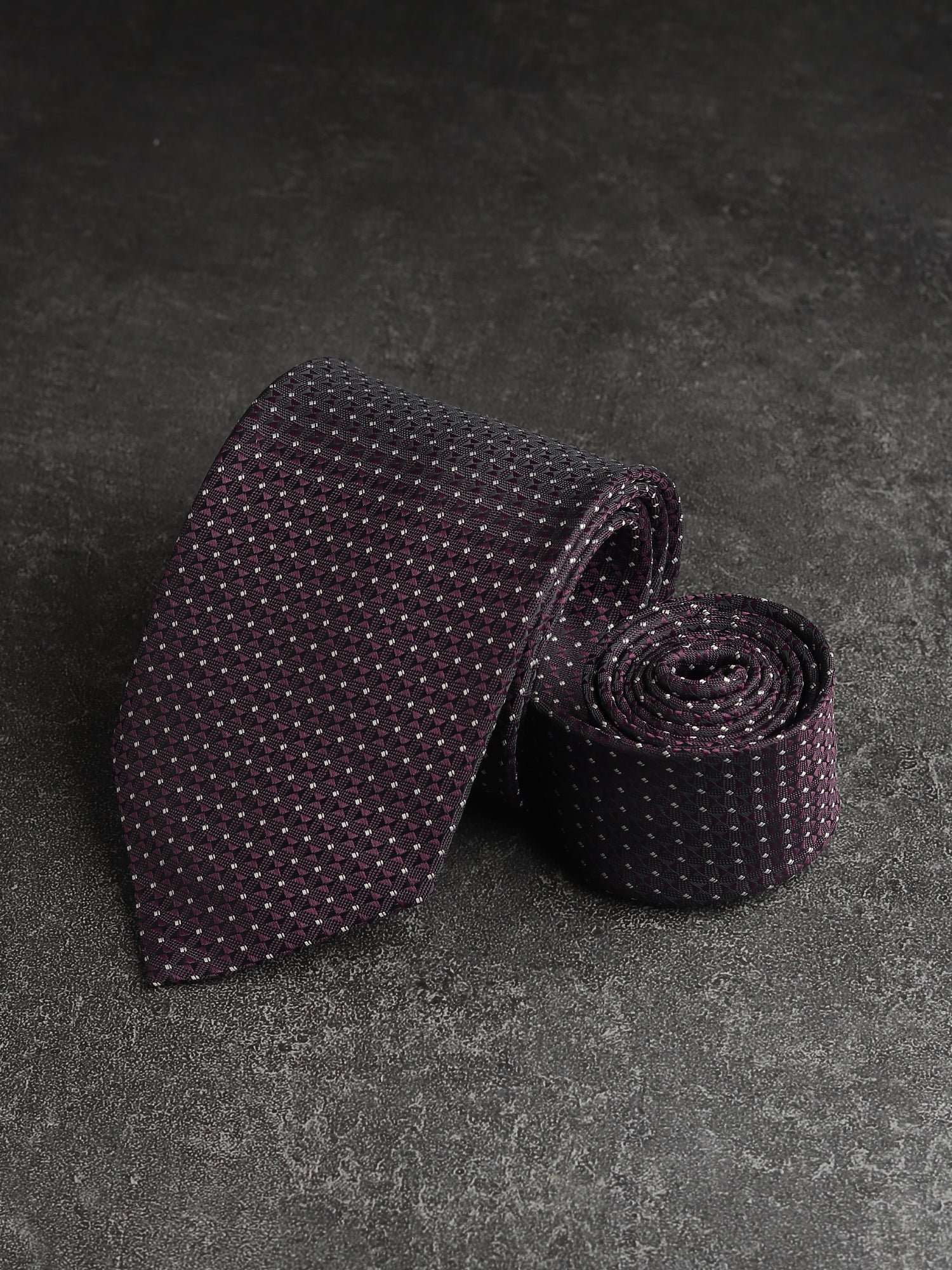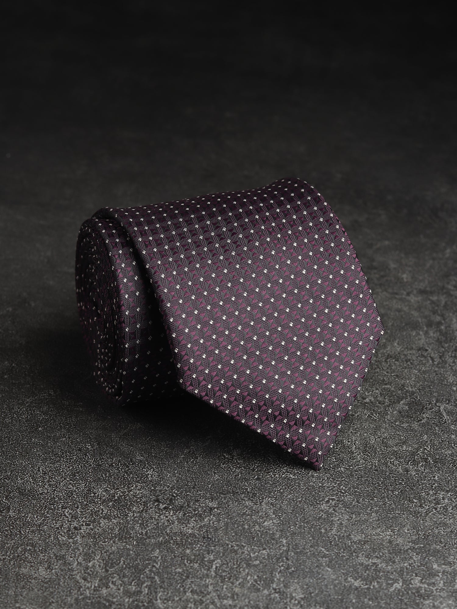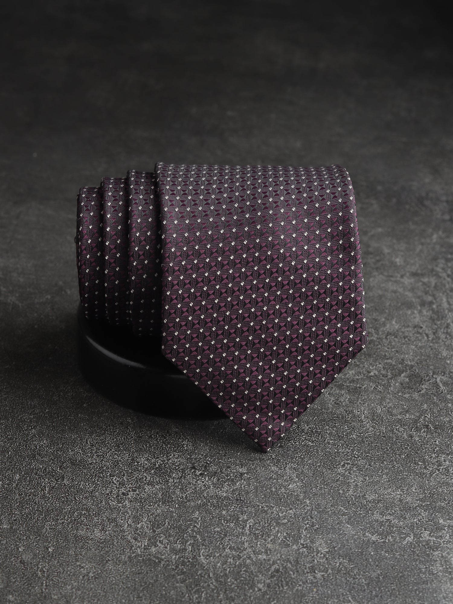 Kanthlangot Classic Geometric Necktie – Deep Purple & Silver