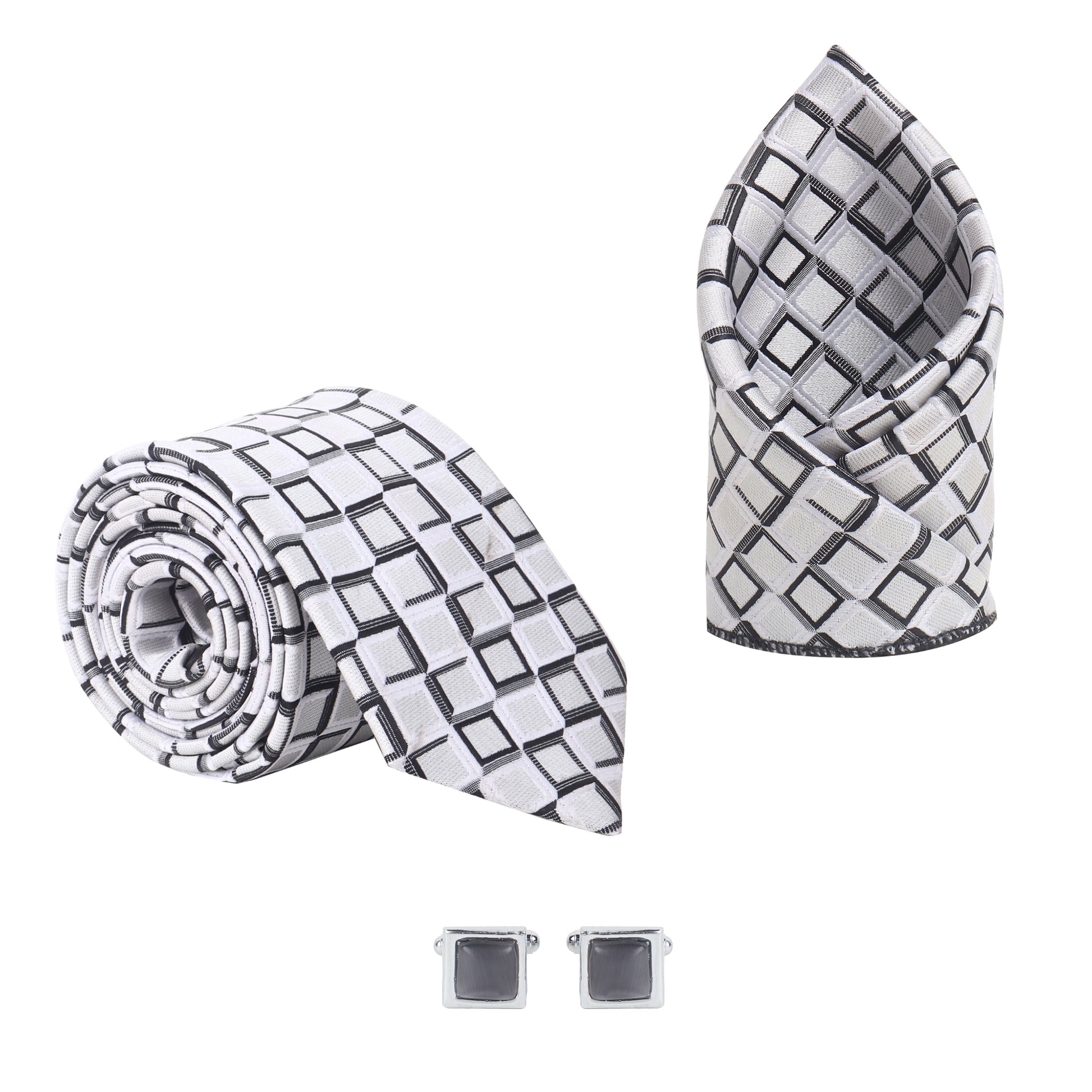 1 Necktie (3-inch width) – White & Black Geometric Square Pattern