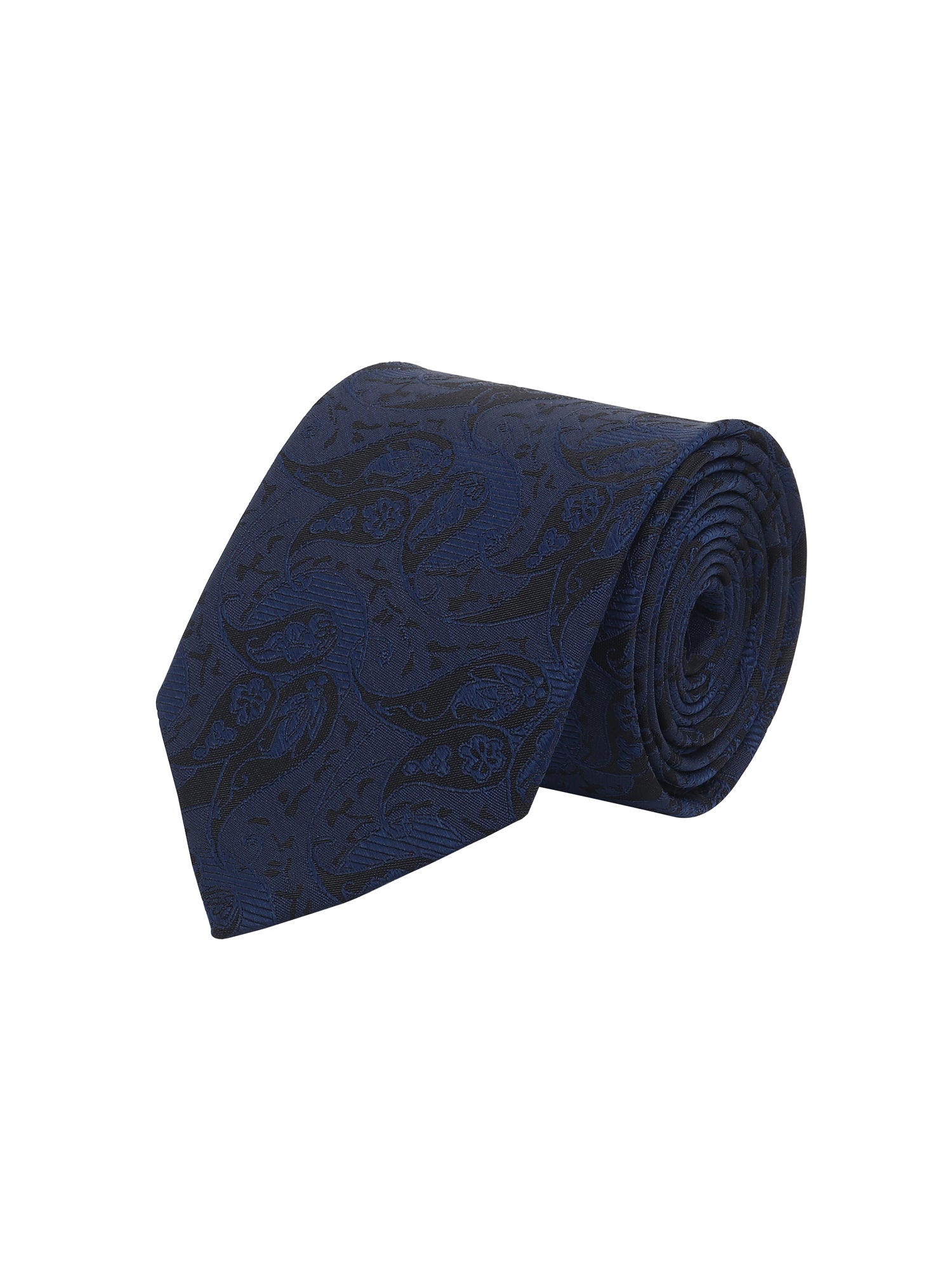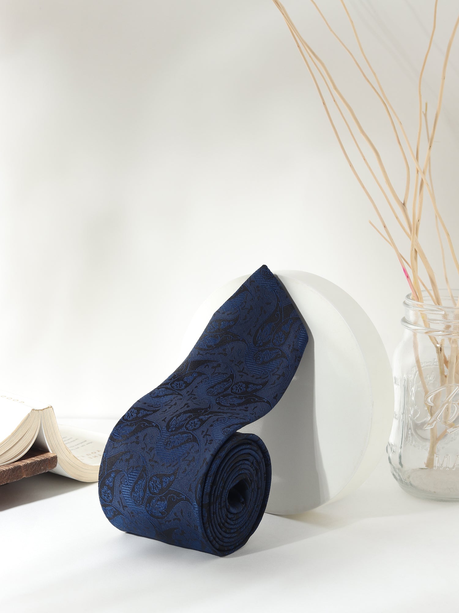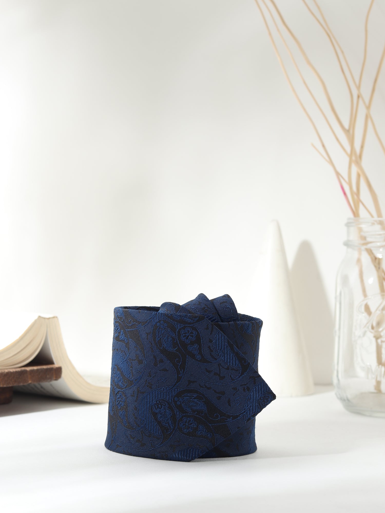 Kanthlangot Men’s Navy Blue & Black Paisley Necktie – Elegant Floral Design