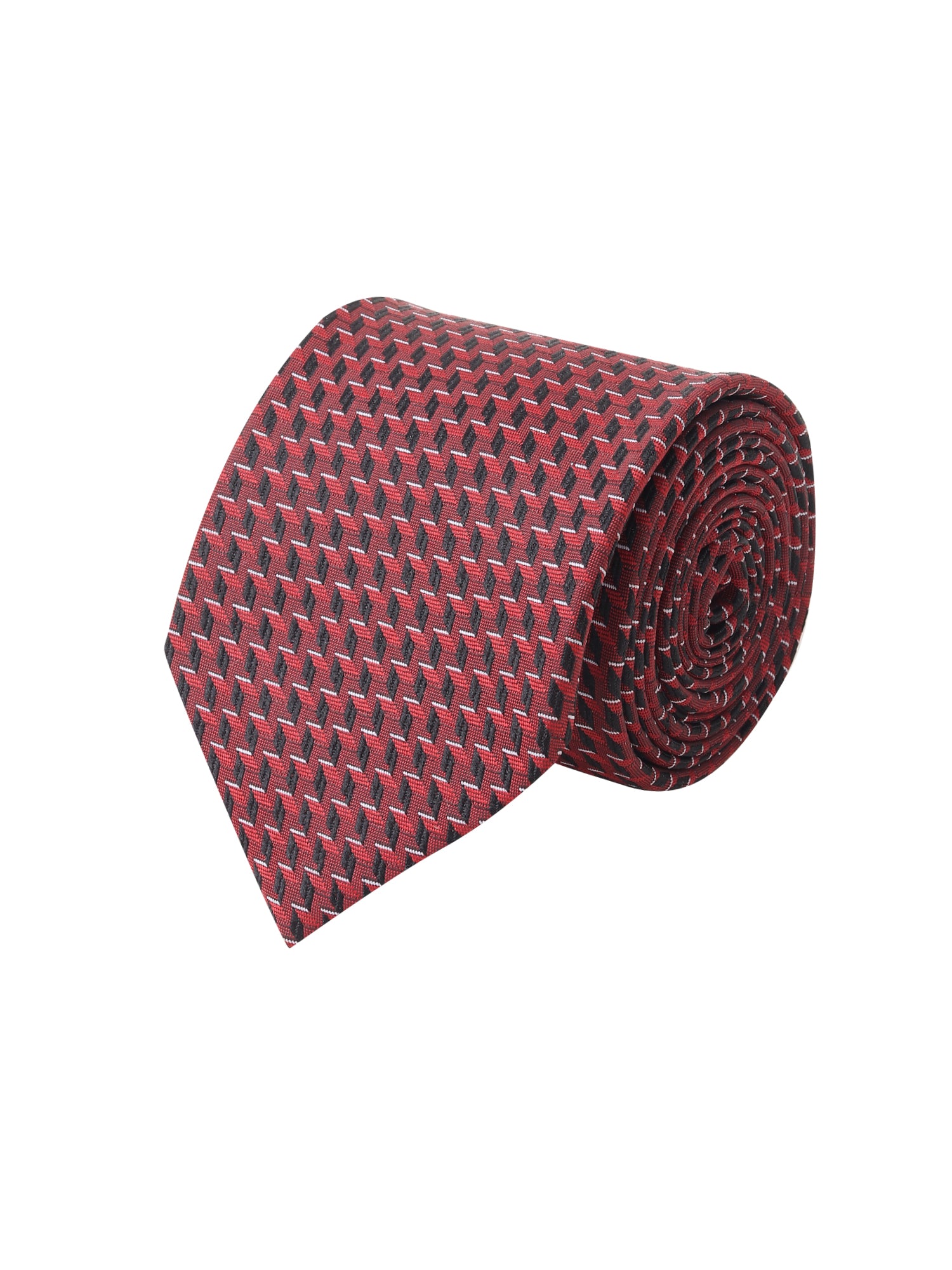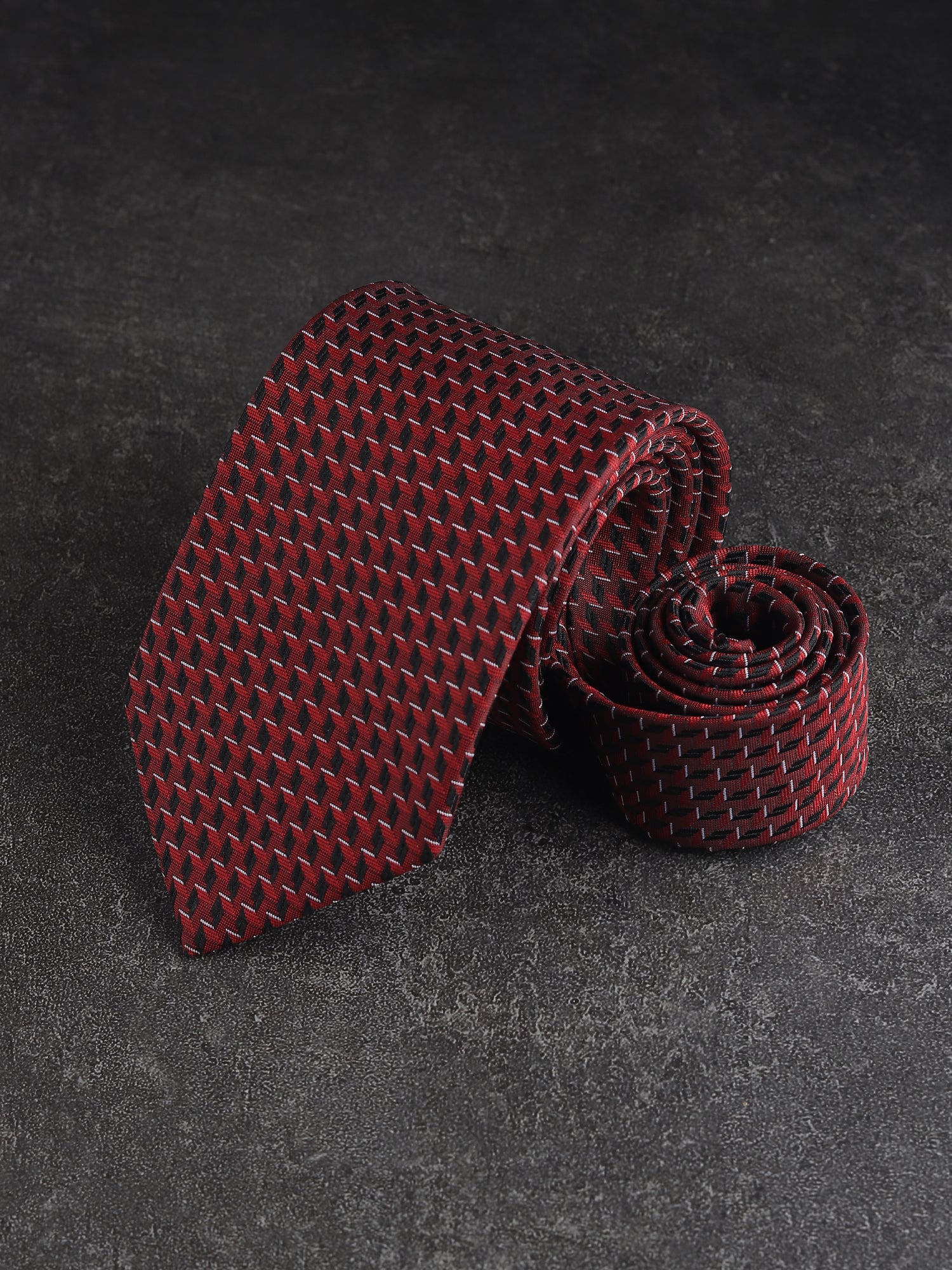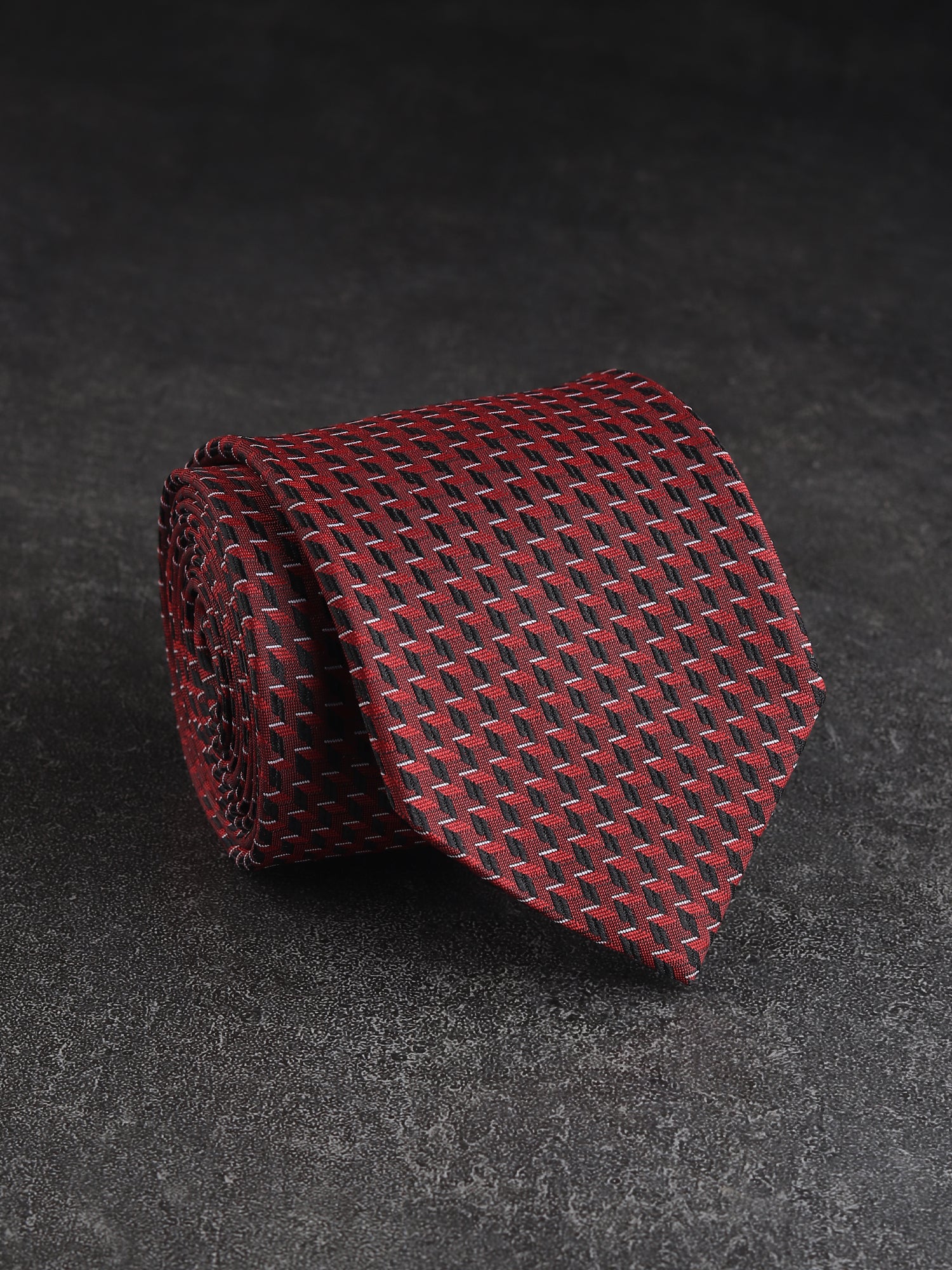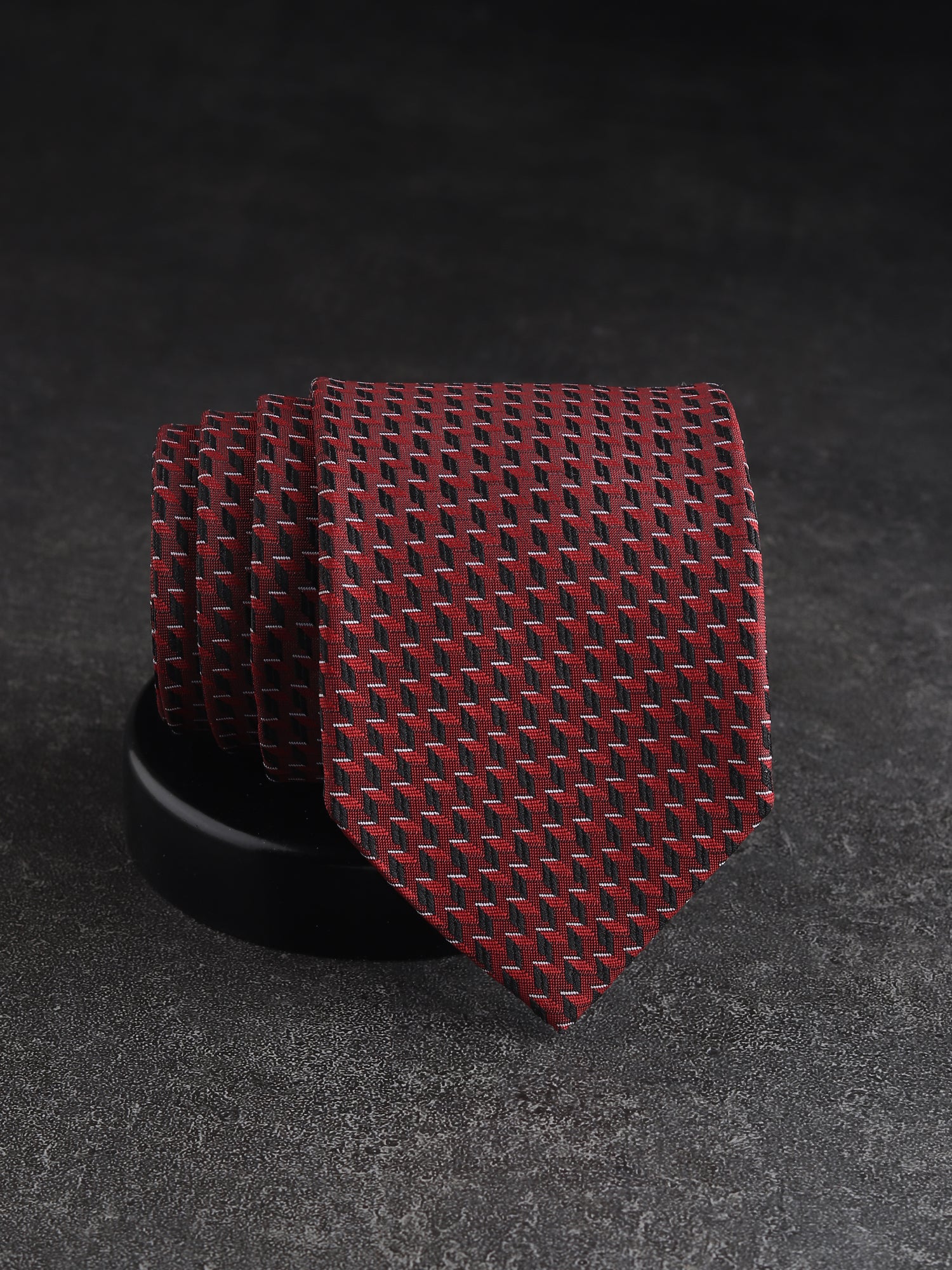 Crafted with premium jacquard fabric, this necktie features a deep red base enhanced by a sleek chevron-inspired geometric pattern in black and white accents. The intricate weave not only exudes luxury but also ensures a smooth and durable finish, perfect for elevating your style.