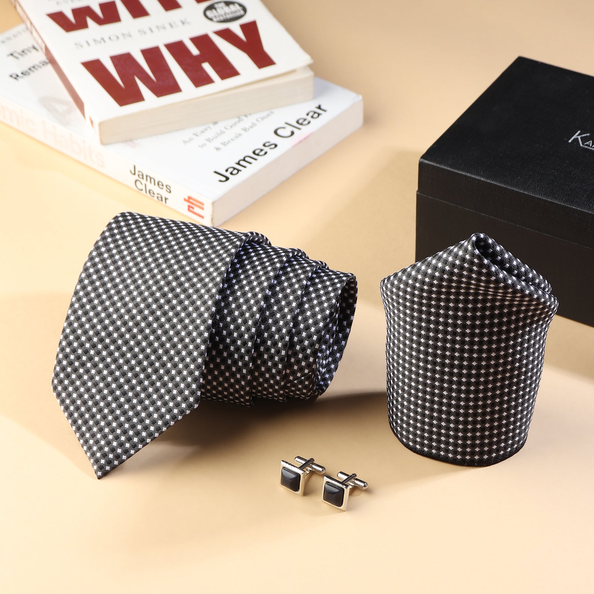 Make your outfit memorable with this Kanthlangot Micro-Check Tie Set — minimalist charm with maximum polish.
