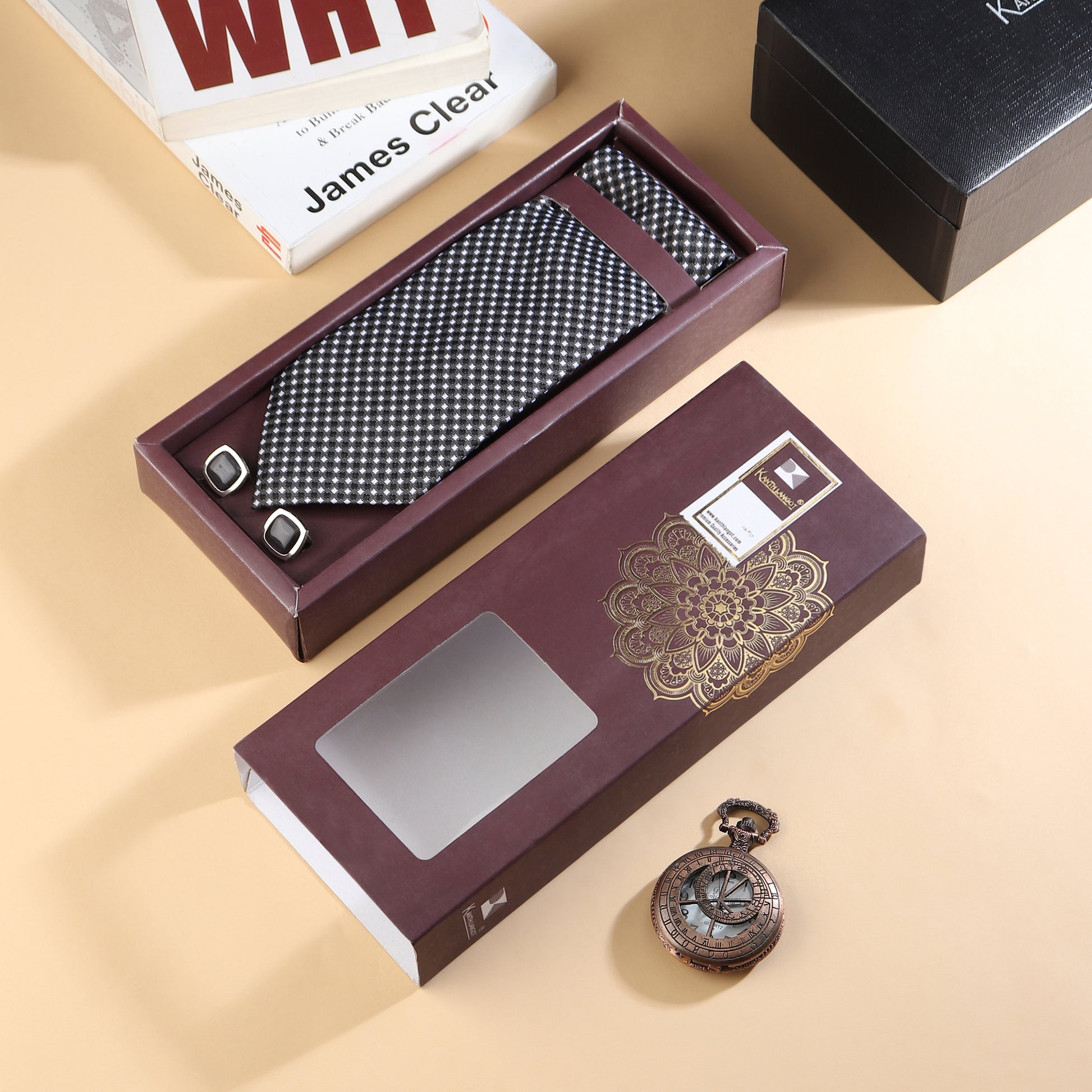 Make your outfit memorable with this Kanthlangot Micro-Check Tie Set — minimalist charm with maximum polish.