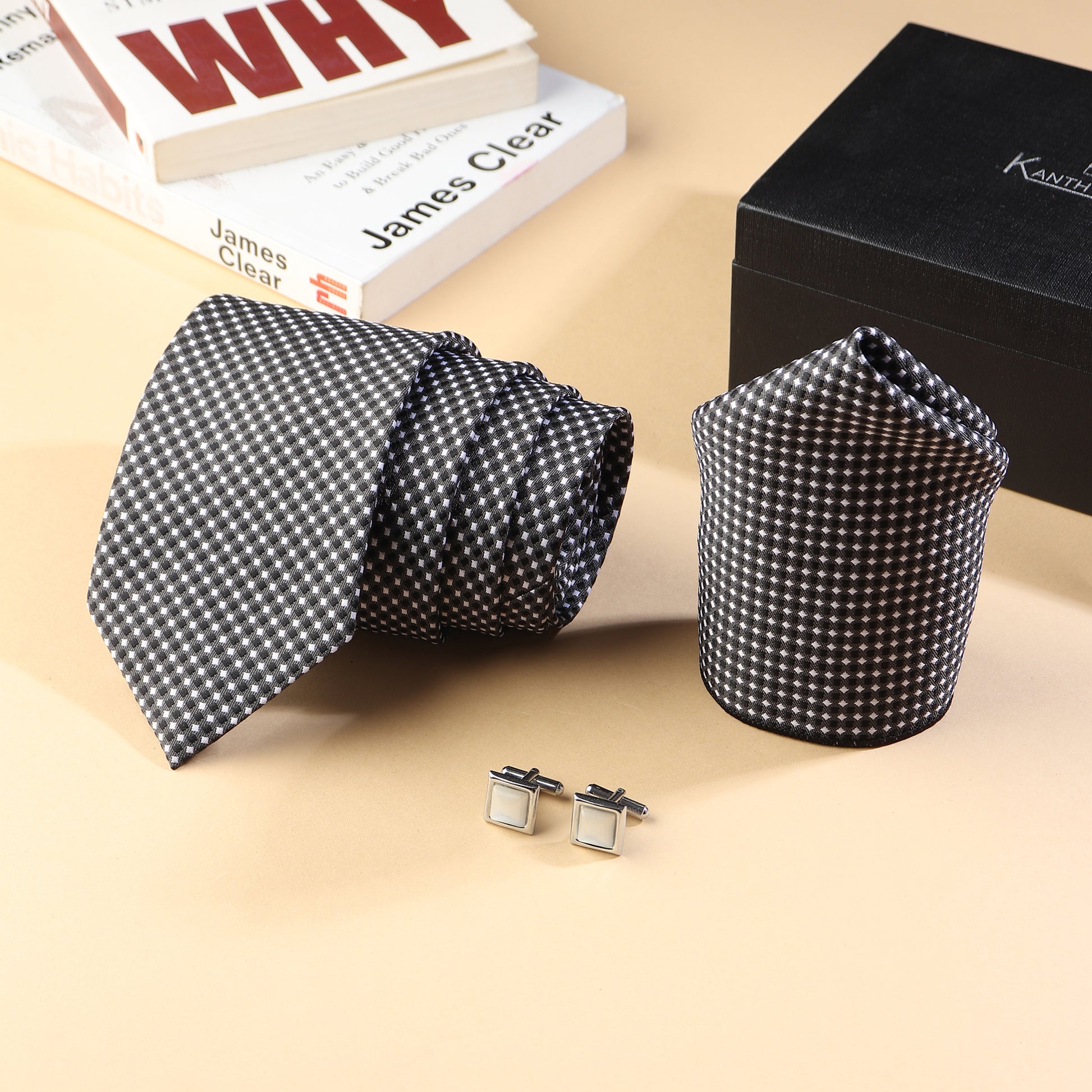 Make your outfit memorable with this Kanthlangot Micro-Check Tie Set — minimalist charm with maximum polish.