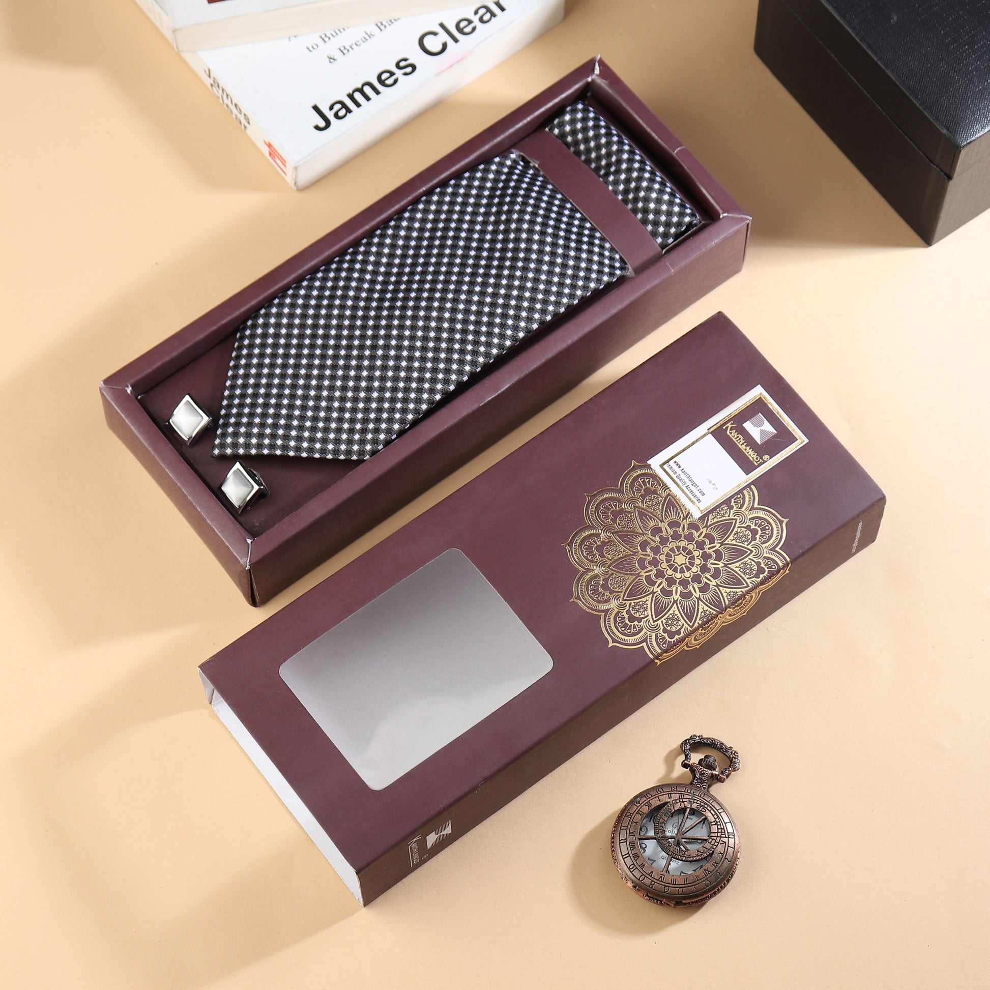 Experience refined elegance with the Kanthlangot Men’s Formal Set, designed for those who appreciate subtle detail and classic style. This set includes a 3-inch wide black and white micro-check necktie for a sharp, modern look that pairs well with any suit or shirt.