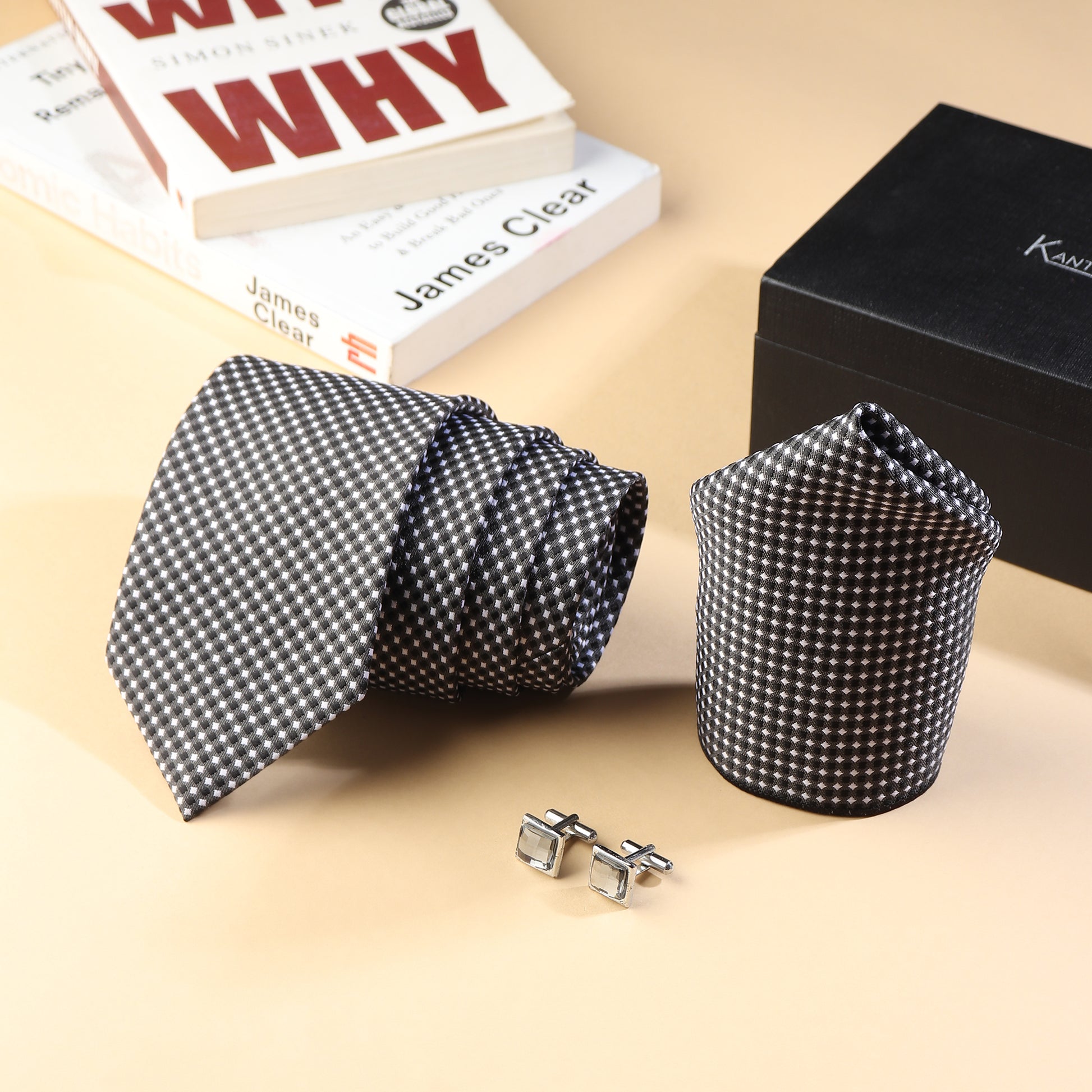 Make your outfit memorable with this Kanthlangot Micro-Check Tie Set — minimalist charm with maximum polish.
