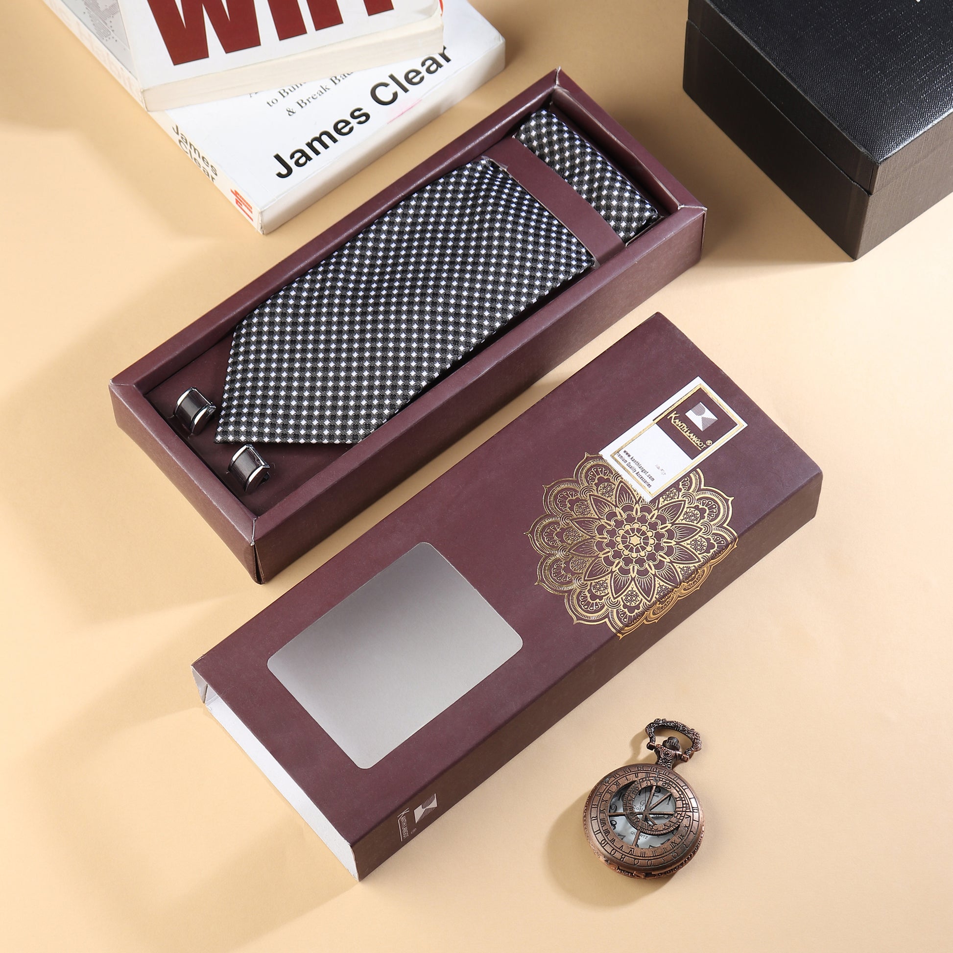 Make your outfit memorable with this Kanthlangot Micro-Check Tie Set — minimalist charm with maximum polish.