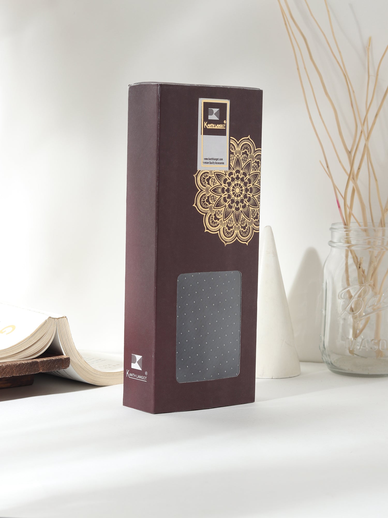 Refined, versatile, and effortlessly elegant, the Kanthlangot Midnight Black Micro-Dot Textured Men’s Necktie is a must-have accessory for the modern gentleman. Featuring a deep midnight black base, this tie is adorned with a subtle micro-dot pattern in light silver, adding just the right amount of visual intrigue without overpowering your ensemble.