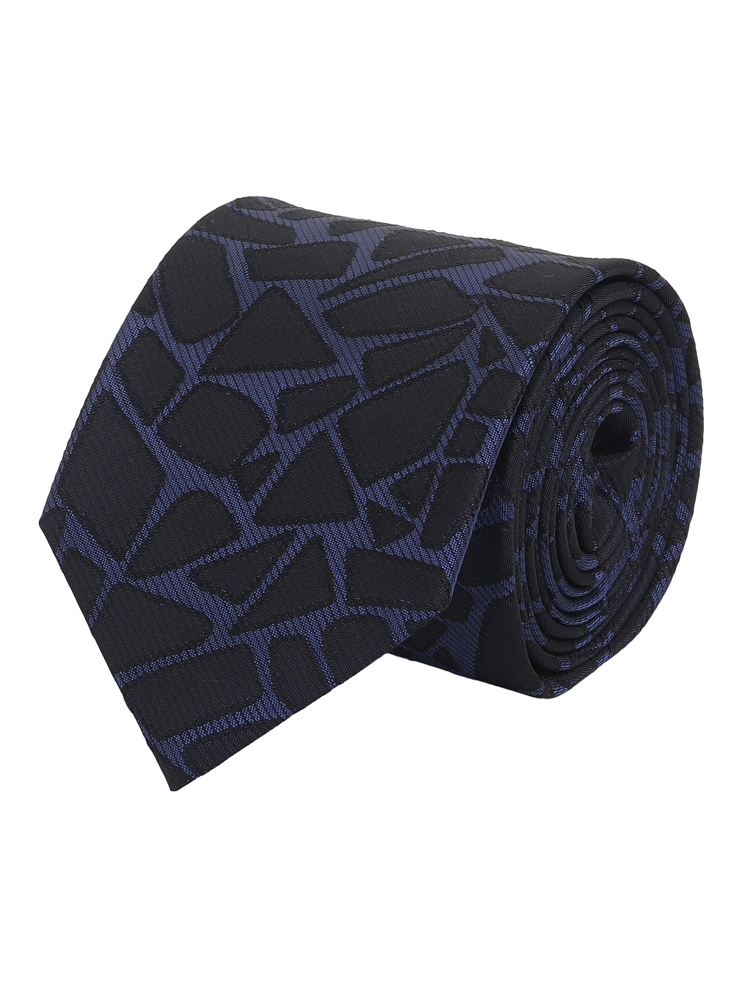 1 Necktie (3-inch width) – Navy Blue with Black Abstract Texture
