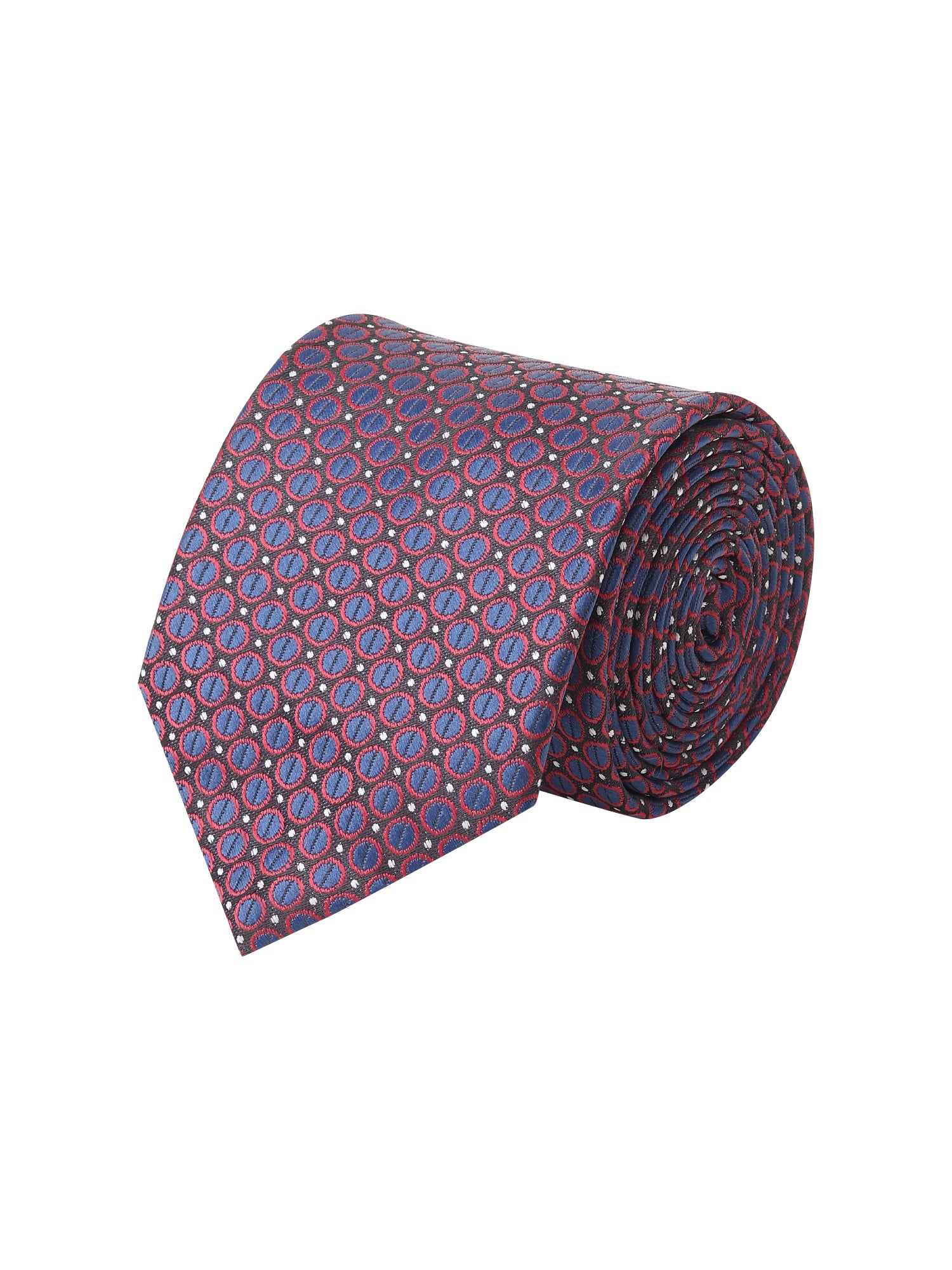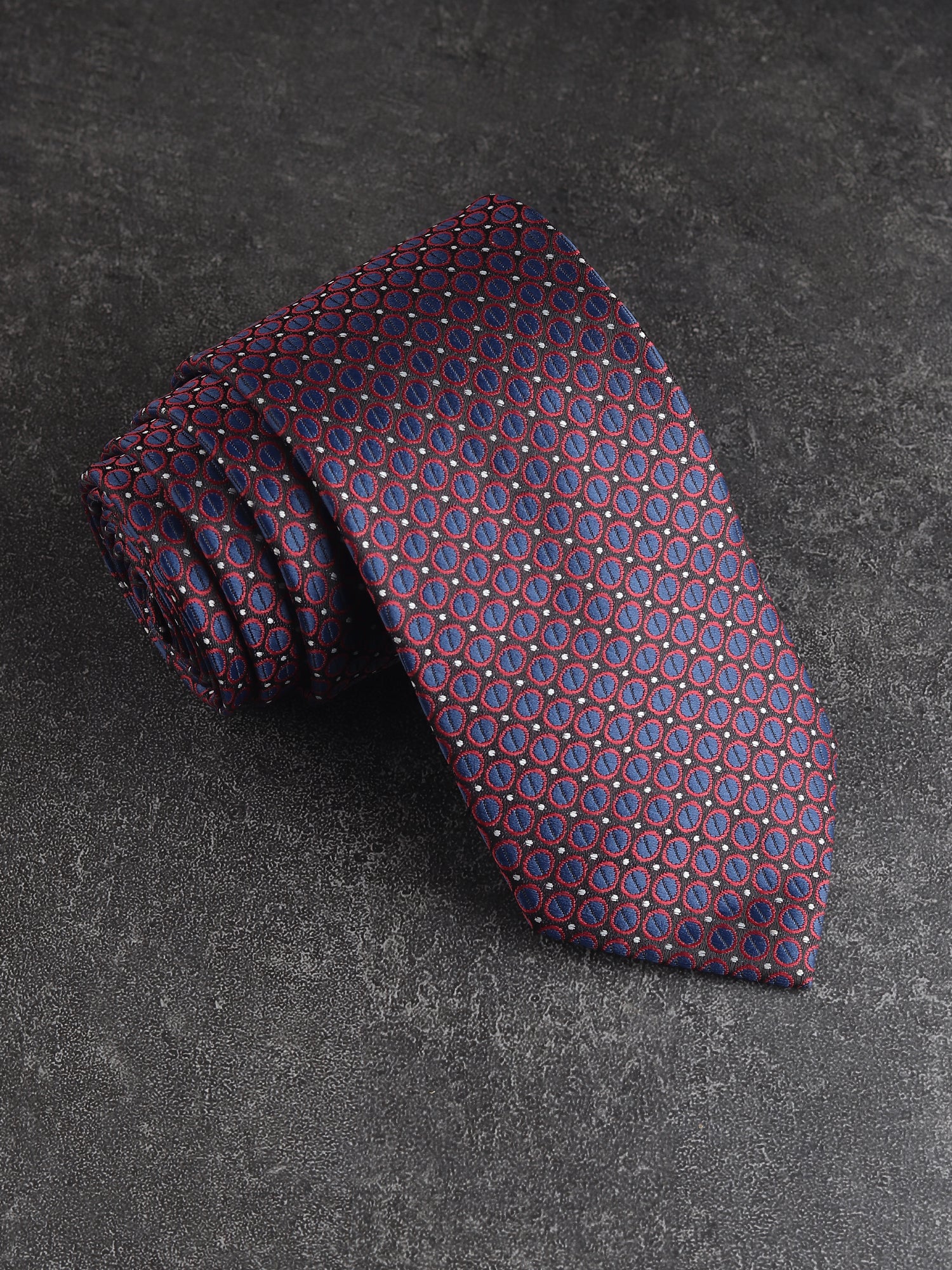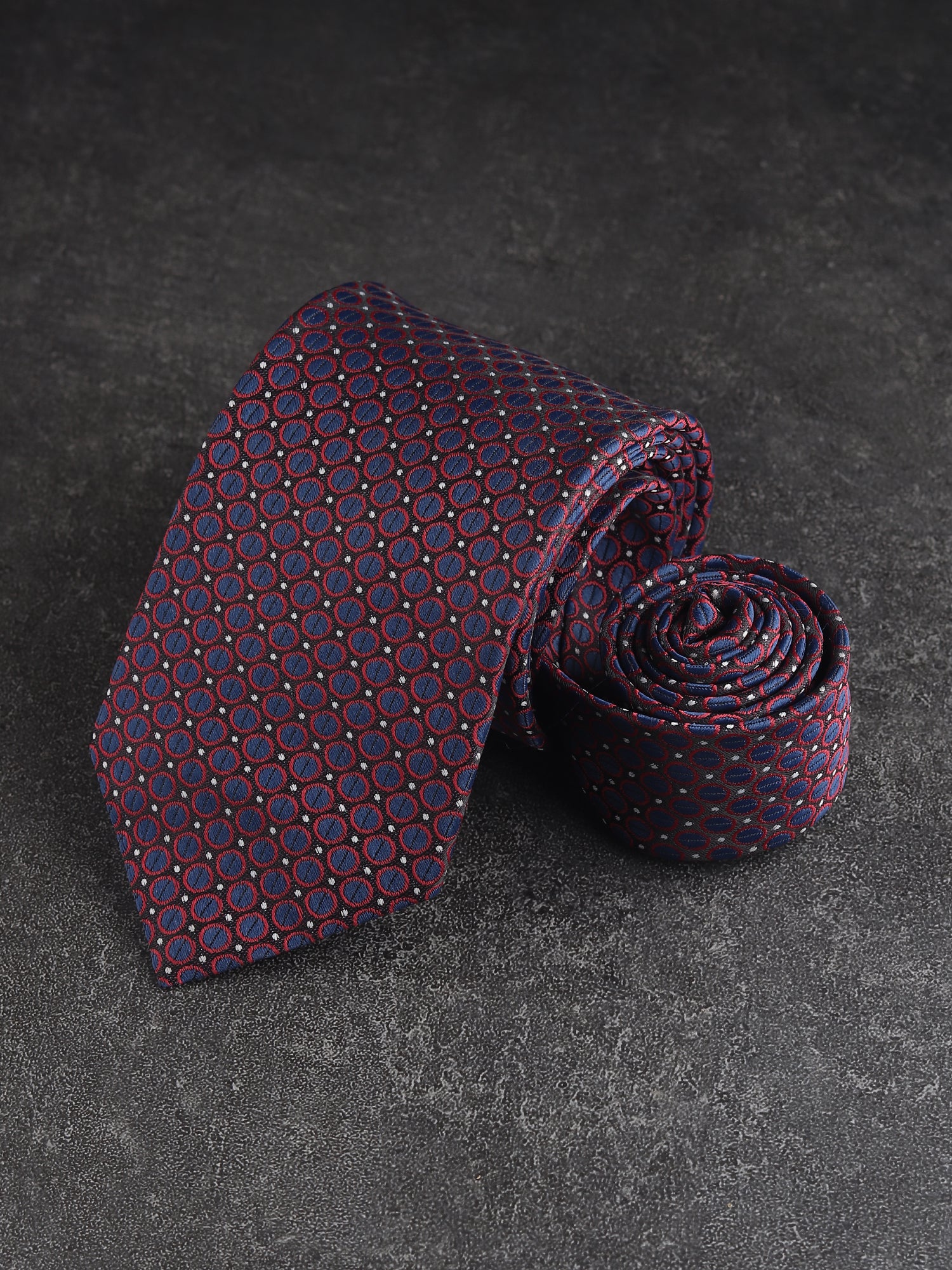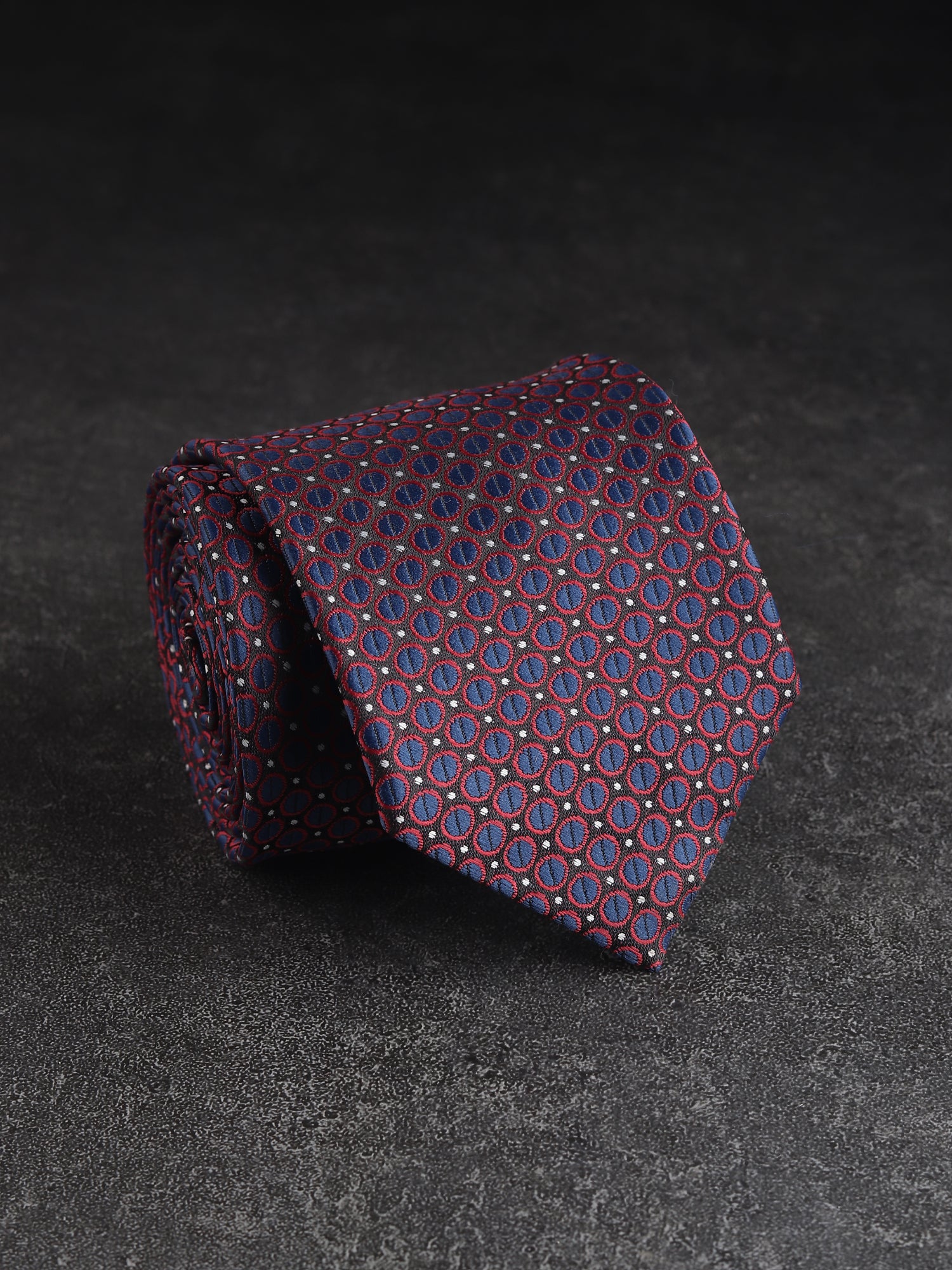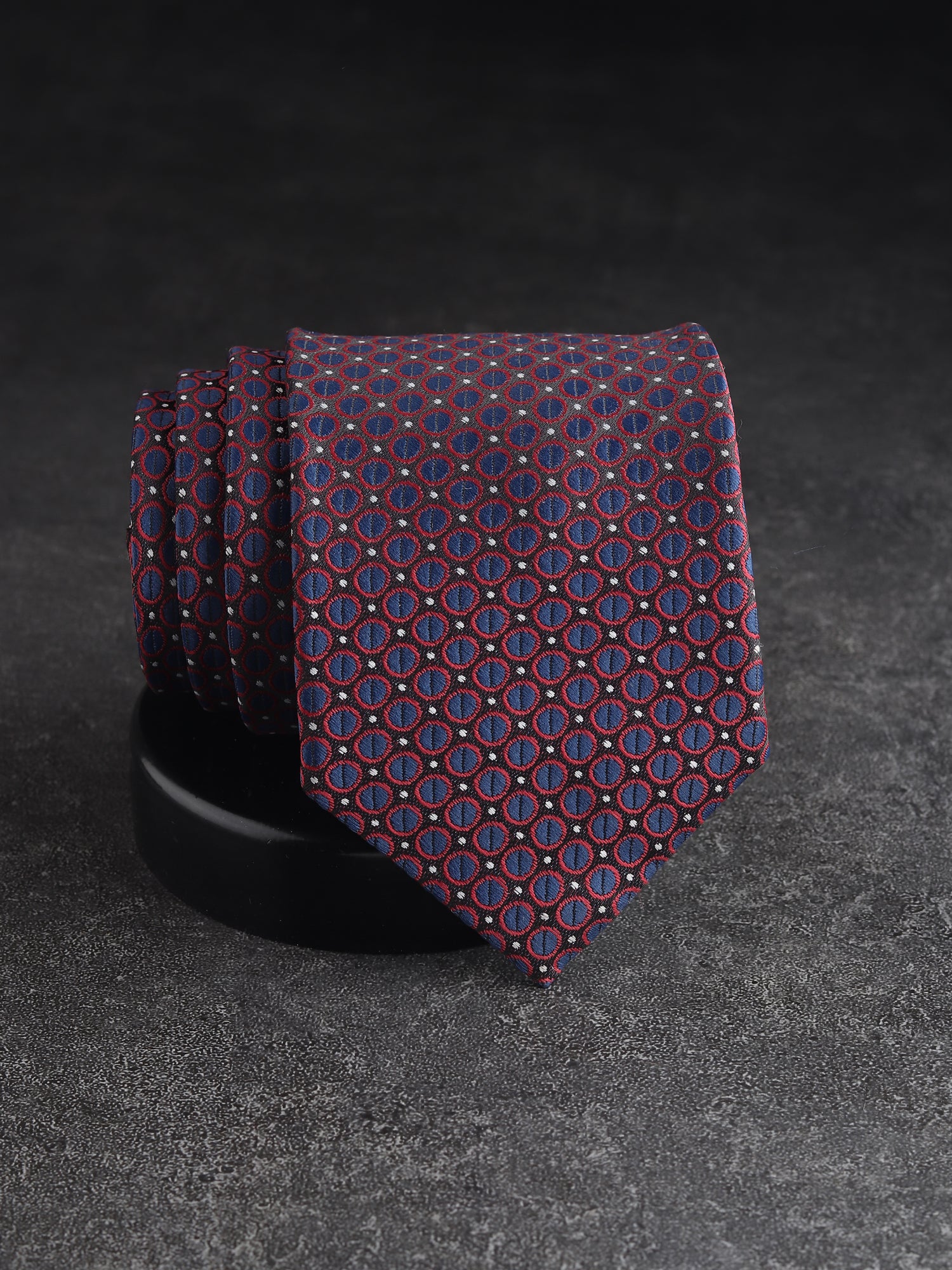 Kanthlangot Navy Blue & Red Circular Pattern Woven Necktie
