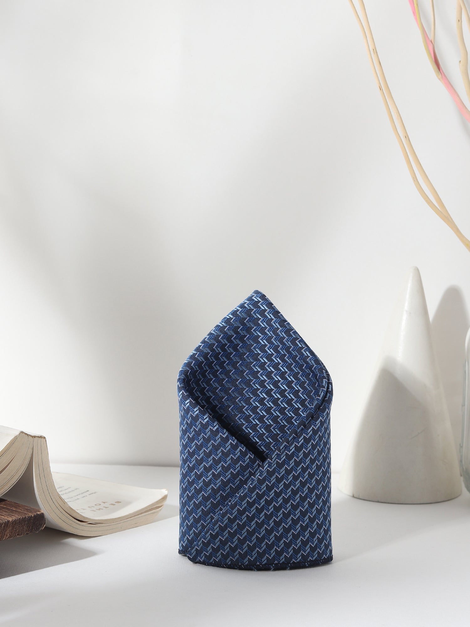 Make a bold yet refined statement with the Kanthlangot Blue Zig Set, tailored for the modern gentleman. Featuring a micro-chevron (zigzag) weave in a sophisticated navy blue palette, this necktie and pocket square duo delivers texture, depth, and distinction to your wardrobe.