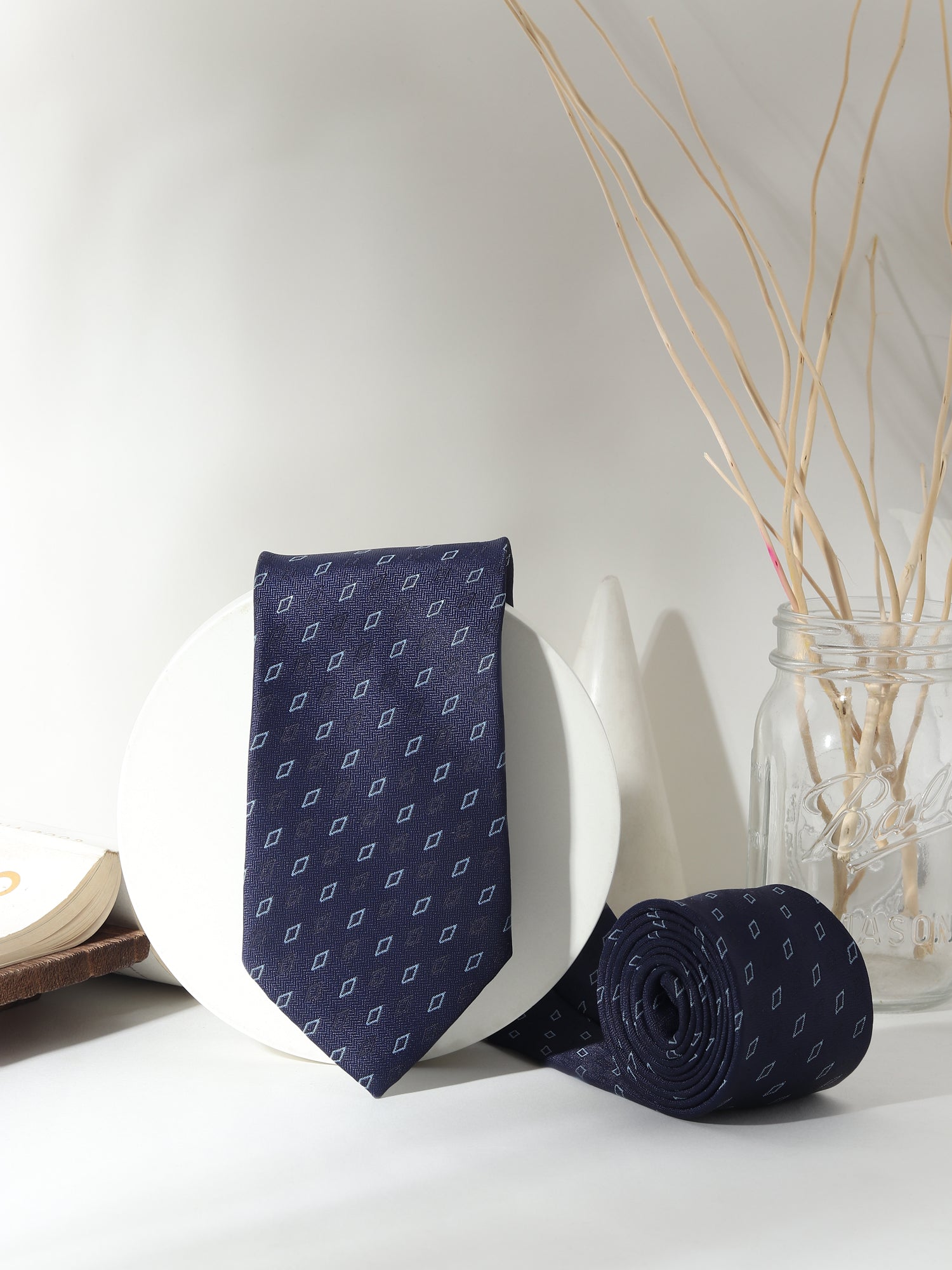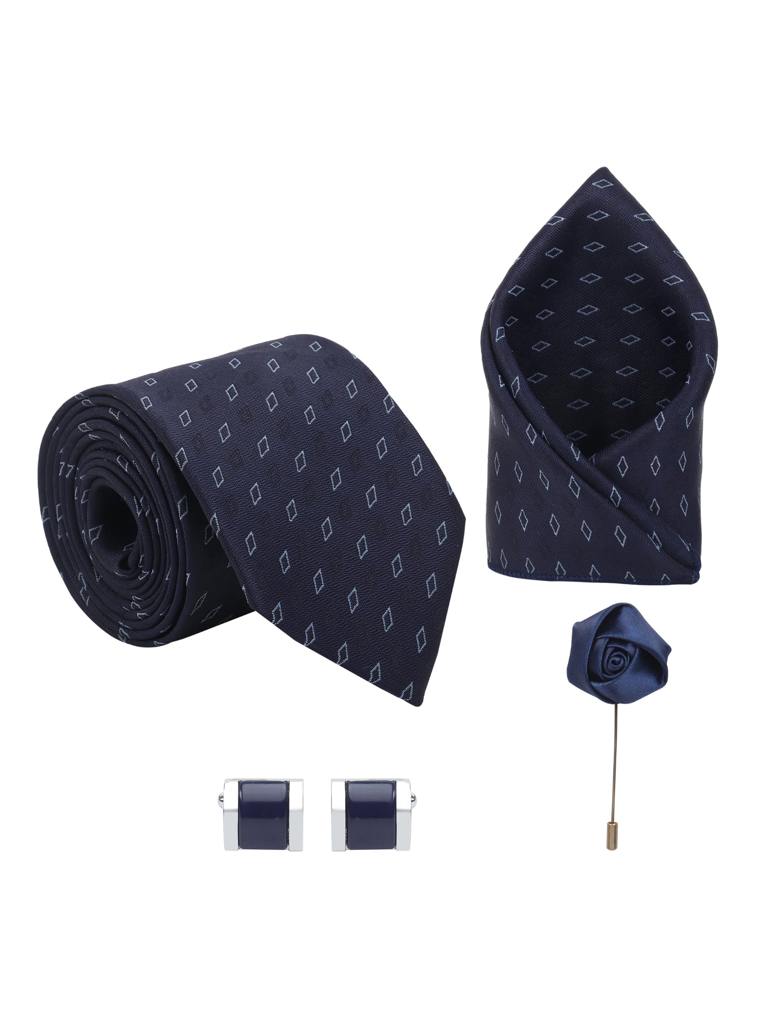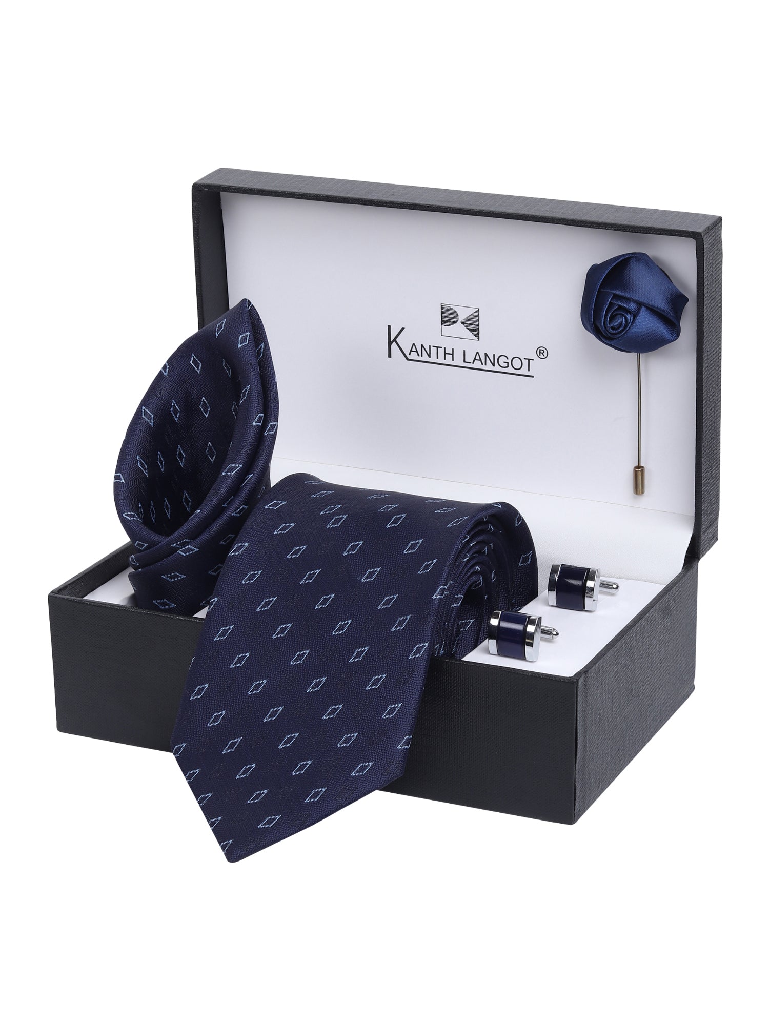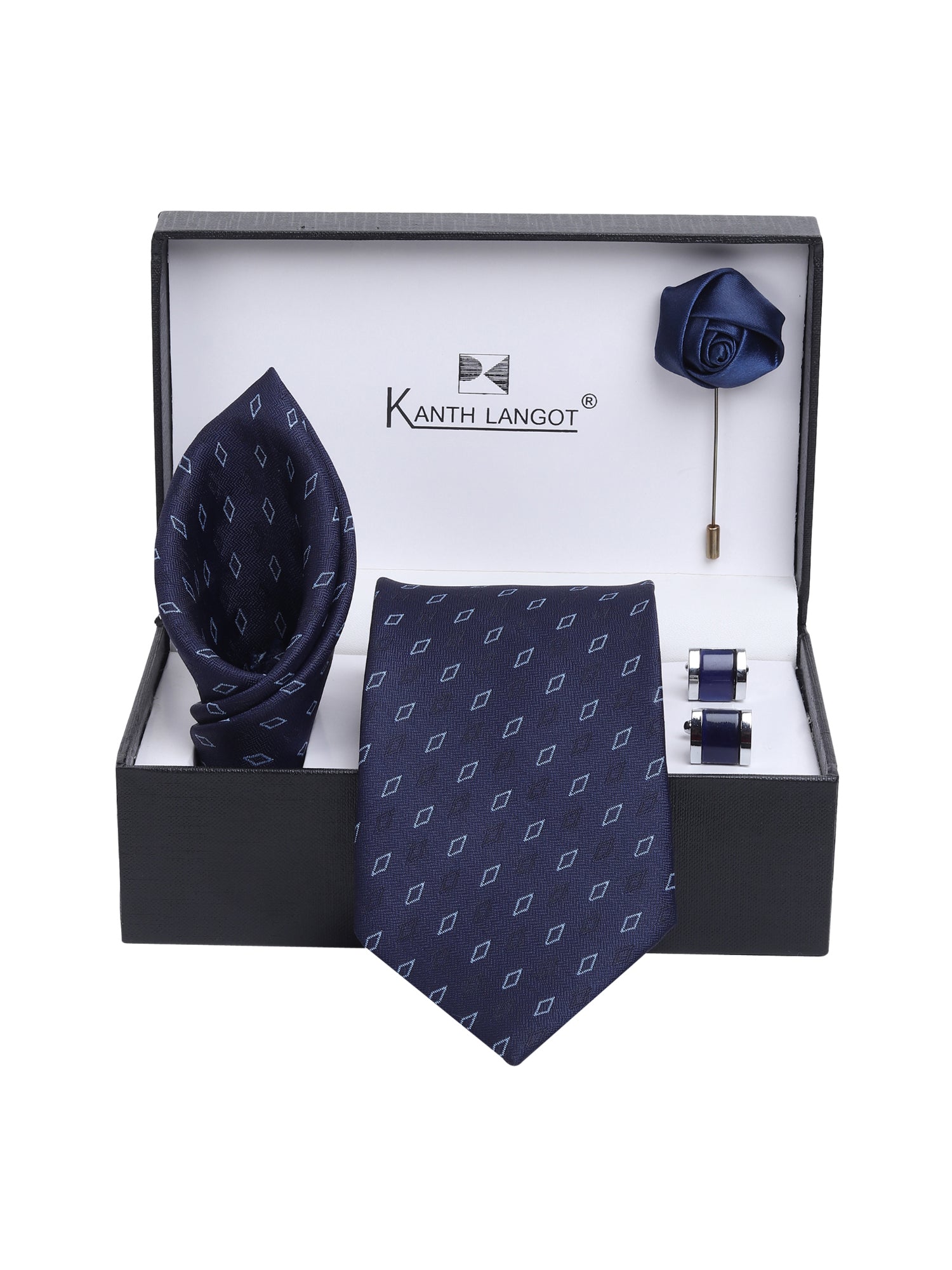 Kanthlangot Navy Diamond Necktie Gift Set with Pocket Square, Cufflinks & Lapel Pin