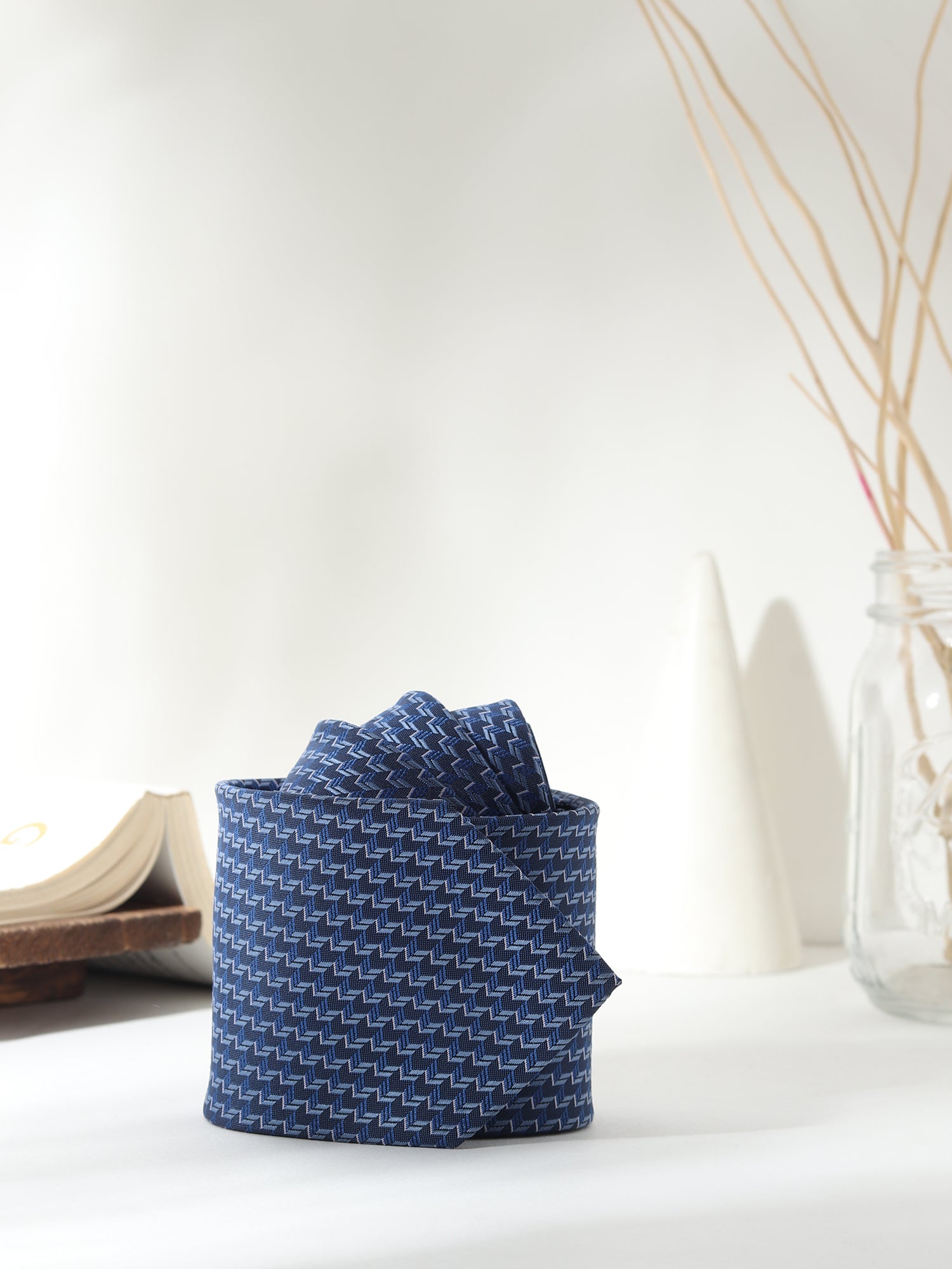 1 Necktie (3-inch width) – Navy with woven zigzag texture