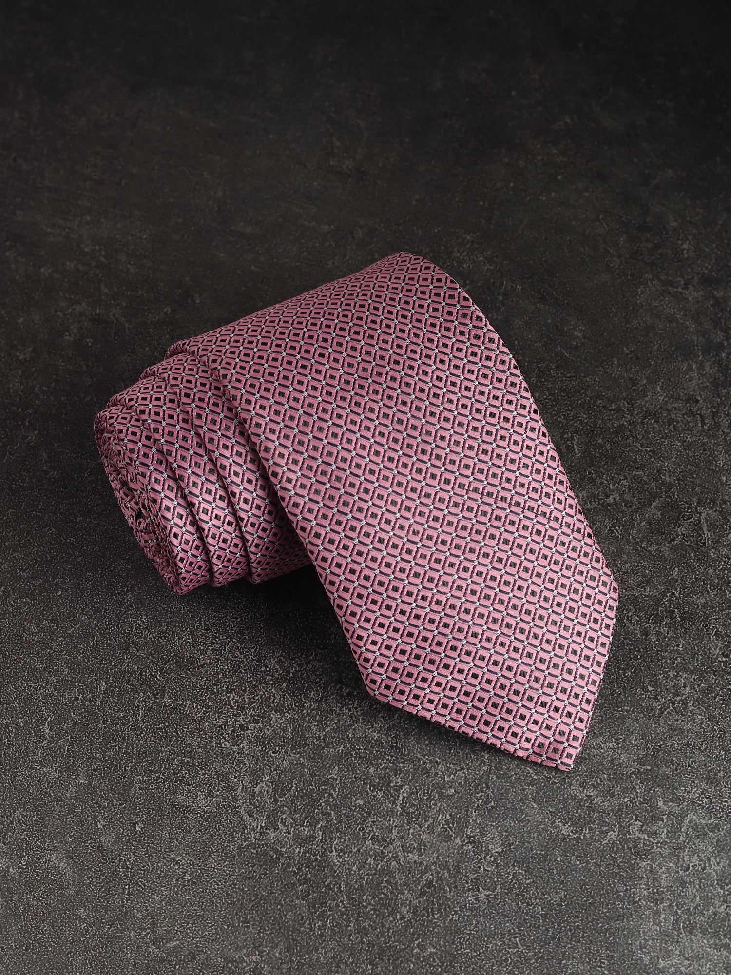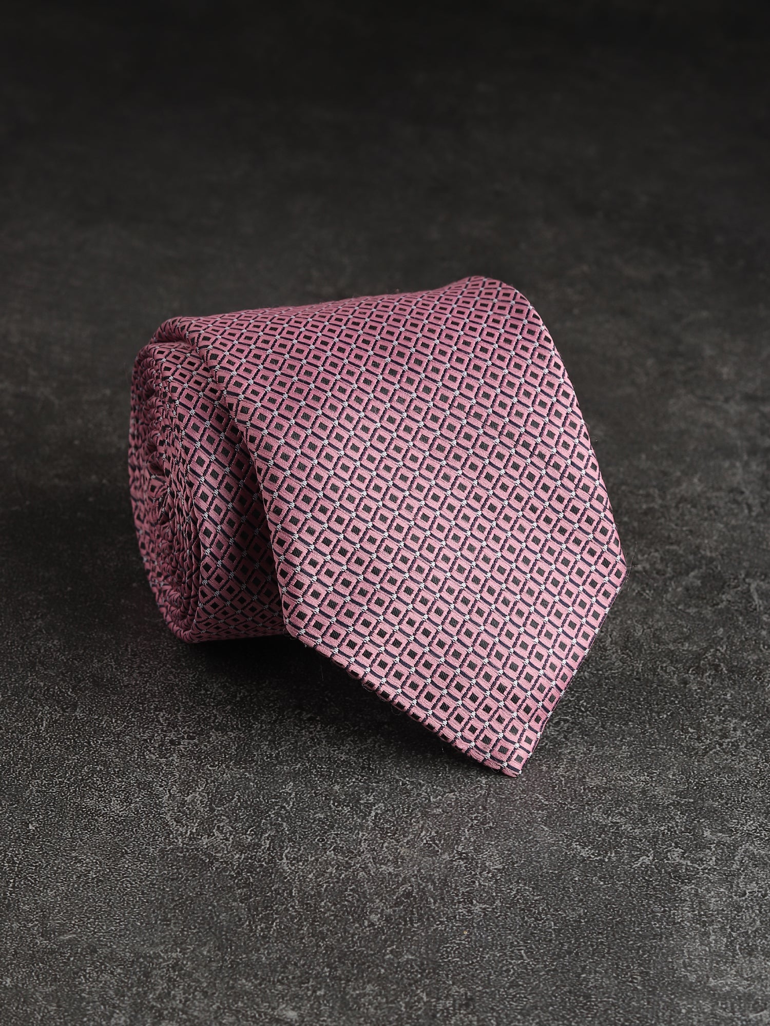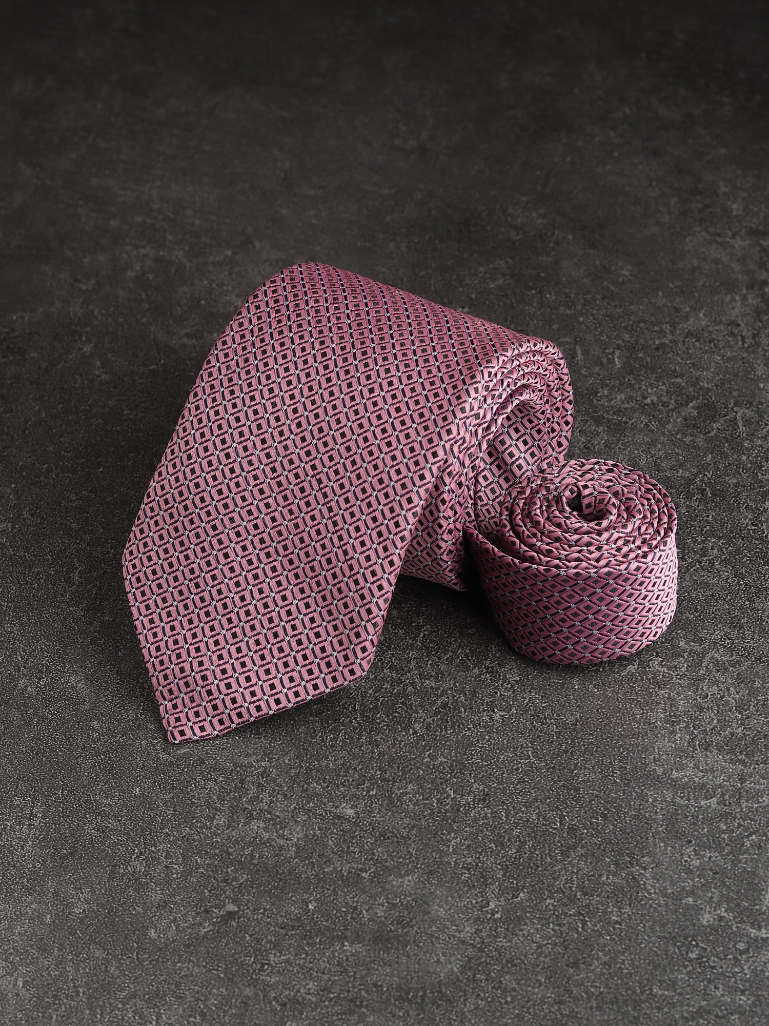 Kanthlangot Pink & Black Diamond Pattern Microfibre Necktie