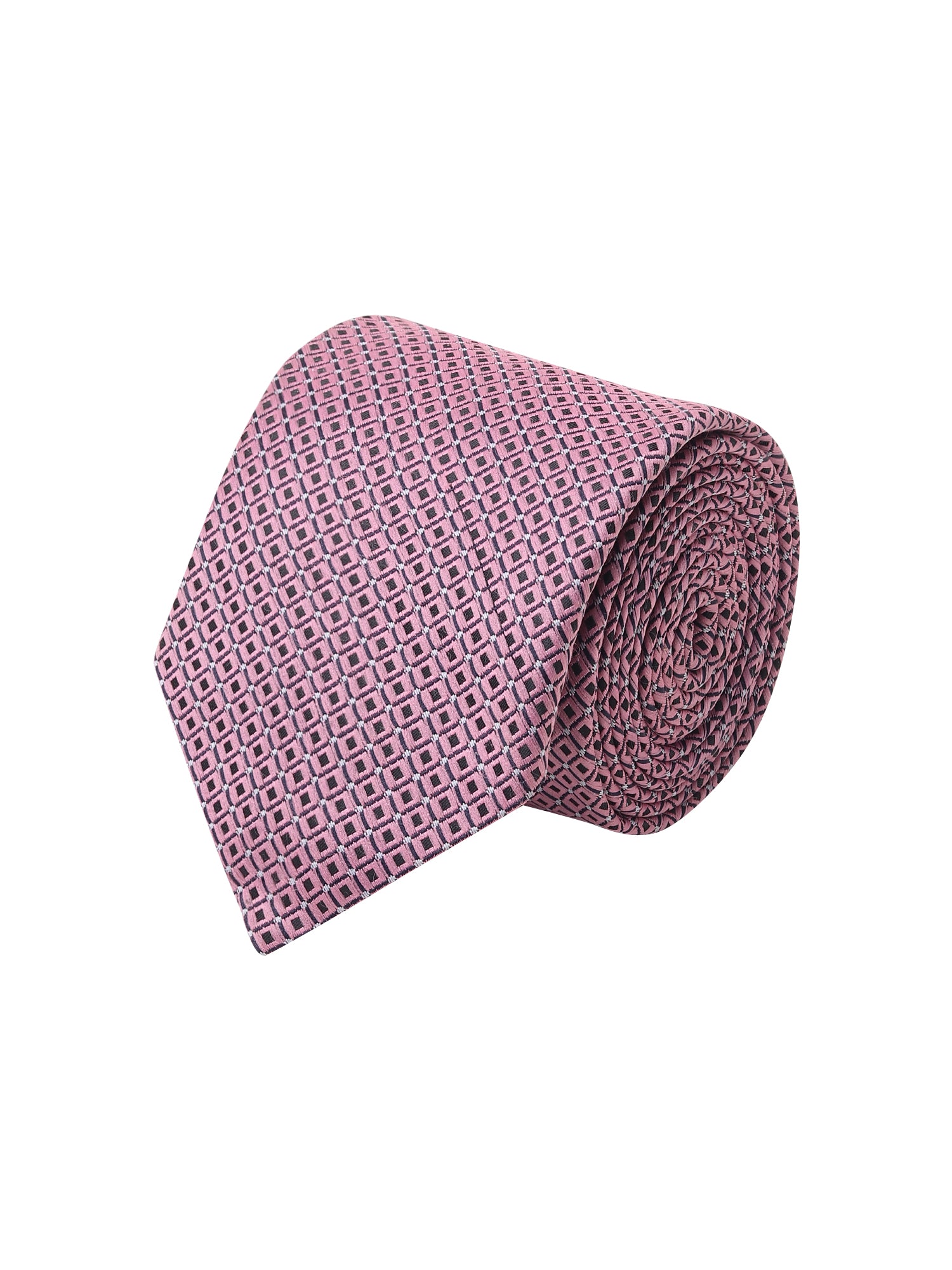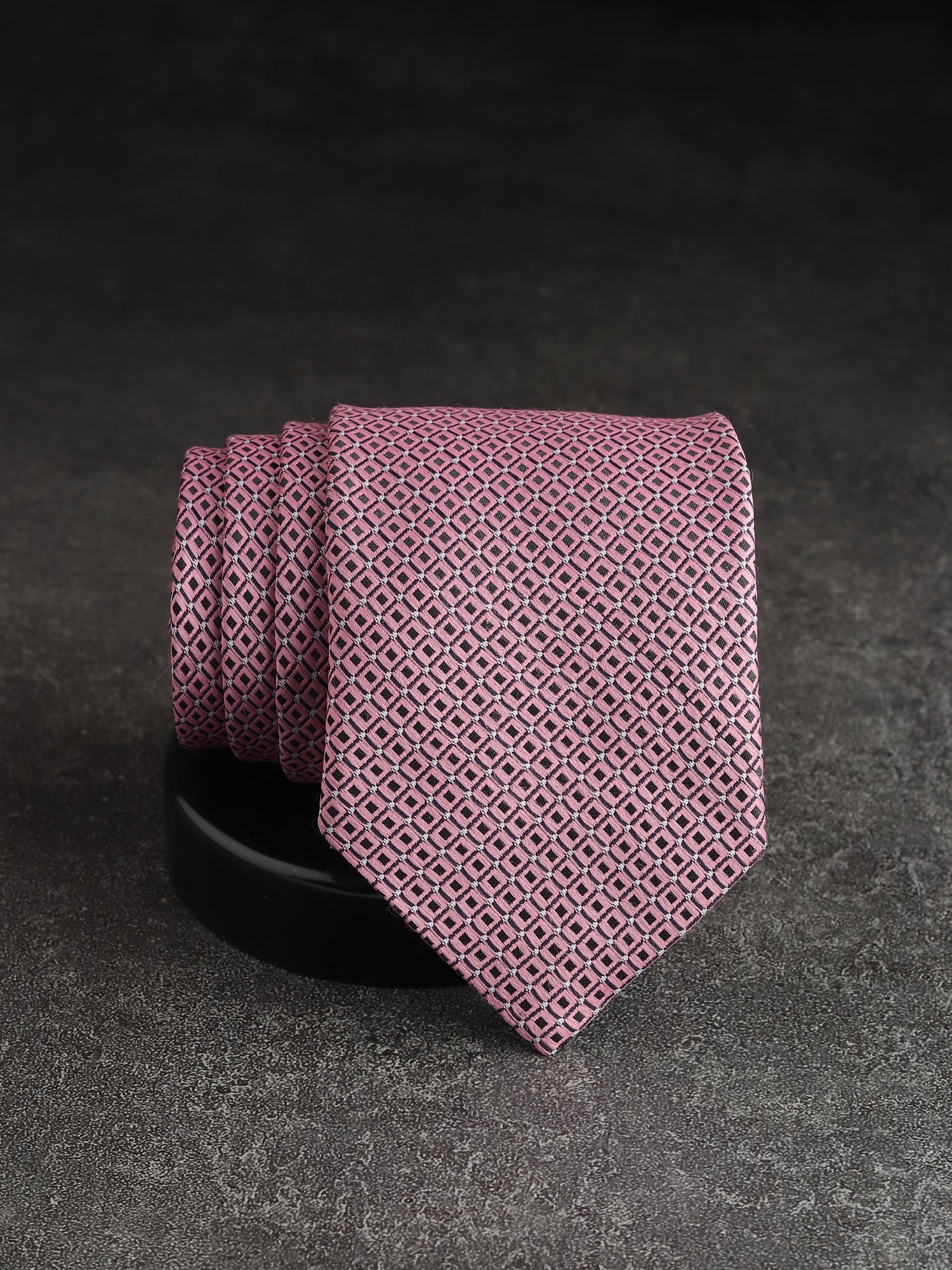 Make a statement with the Kanthlangot Pink & Black Diamond Pattern Silk Necktie, a perfect blend of elegance and contemporary style. This sophisticated accessory features a soft pink base adorned with an intricate black geometric diamond pattern, creating a striking yet refined contrast. Crafted from high-quality woven silk, it offers a smooth, luxurious feel and a polished finish, making it an excellent choice for both formal events and business wear.