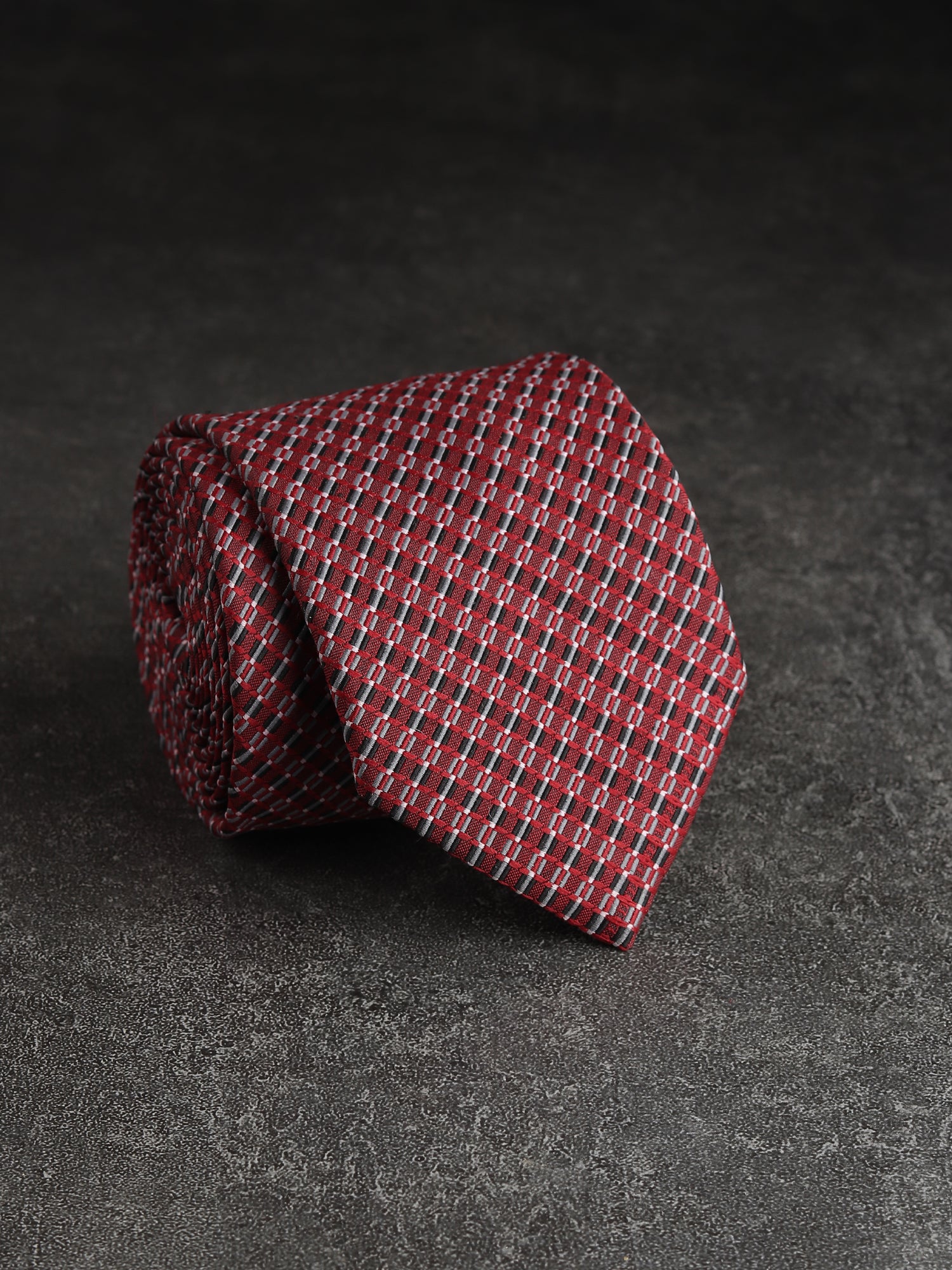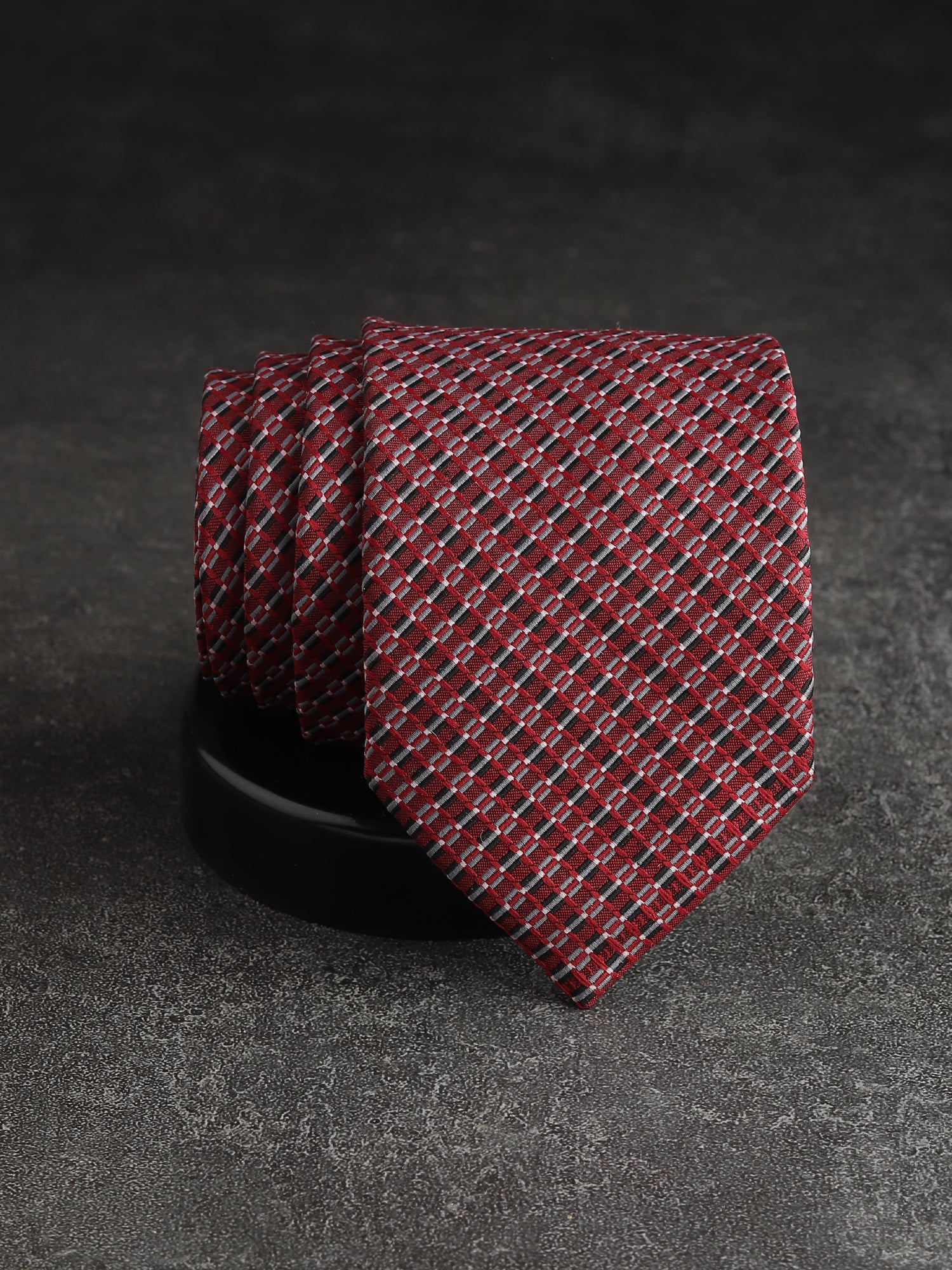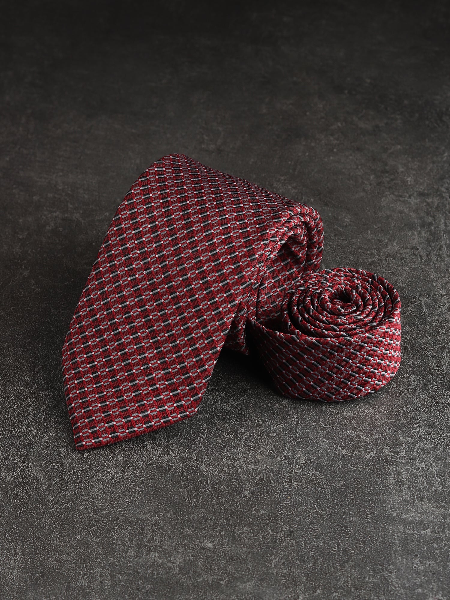 Kanthlangot Red & Grey Textured Checkered Necktie
