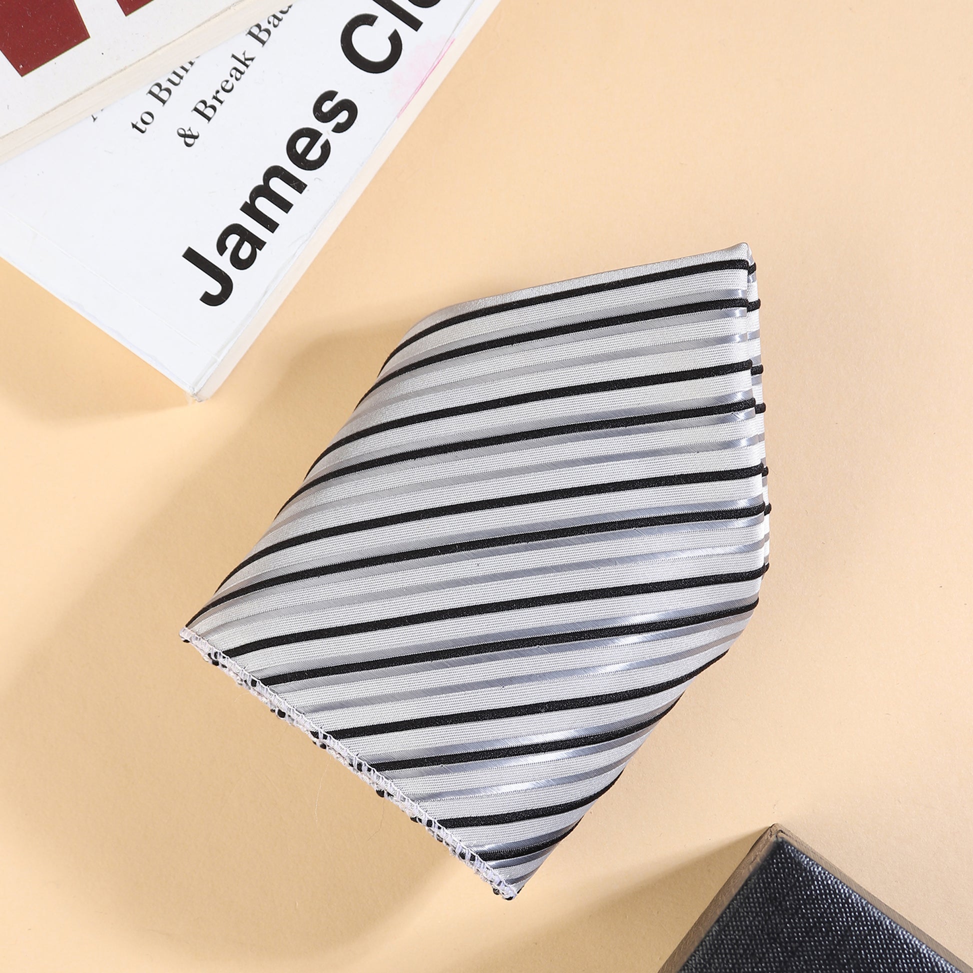 Elevate your formal style with the Kanthlangot Men’s Formal Set, thoughtfully crafted for the modern man who values classic elegance with a contemporary twist. This set features a 3-inch striped tie in sophisticated white, grey, and black hues, paired with a matching pocket square to complete your polished look.