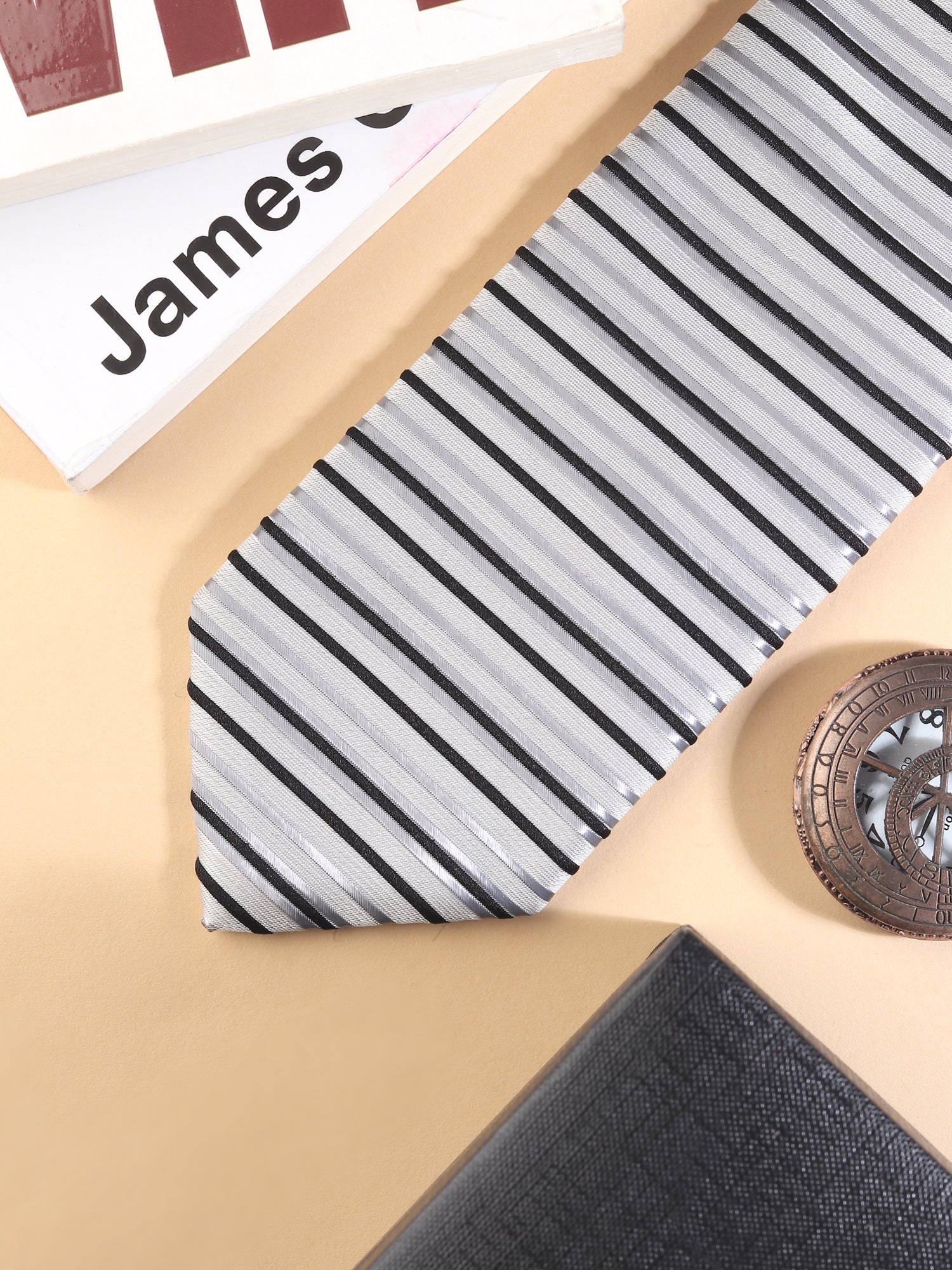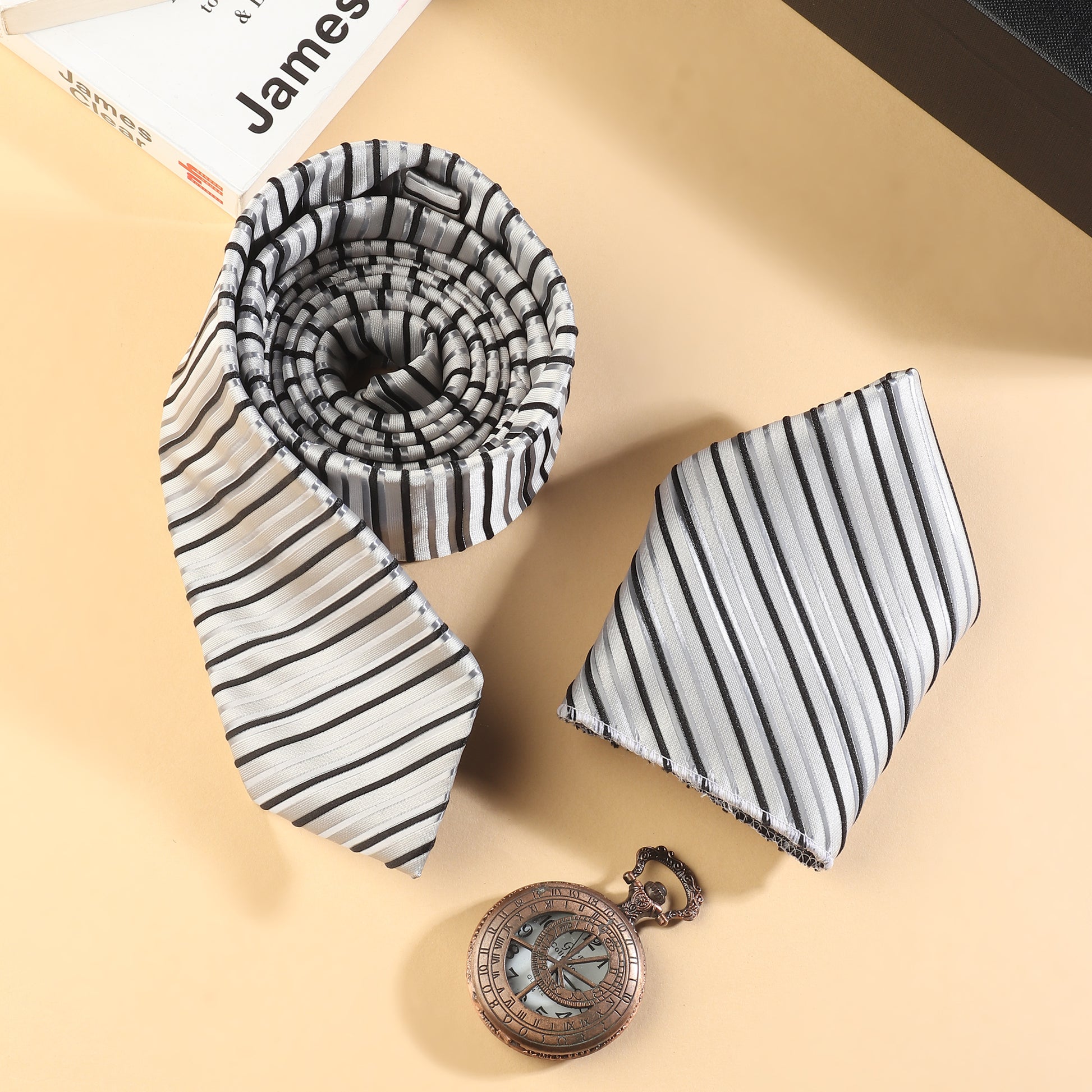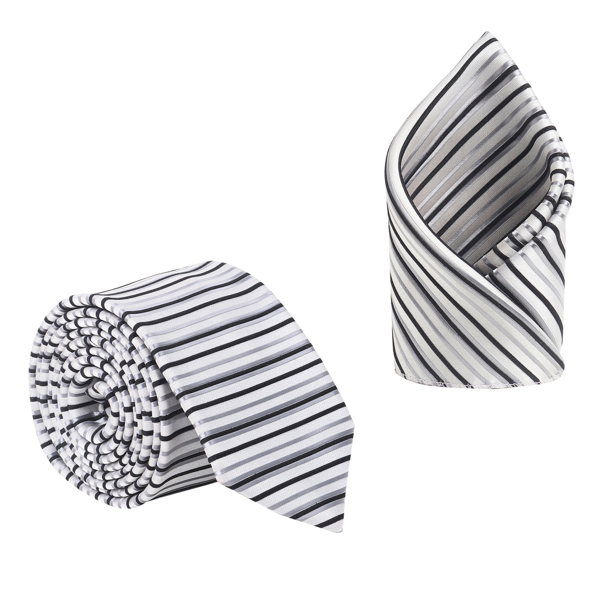 Kanthlangot White Silver Stripe Necktie & Pocket Square Set