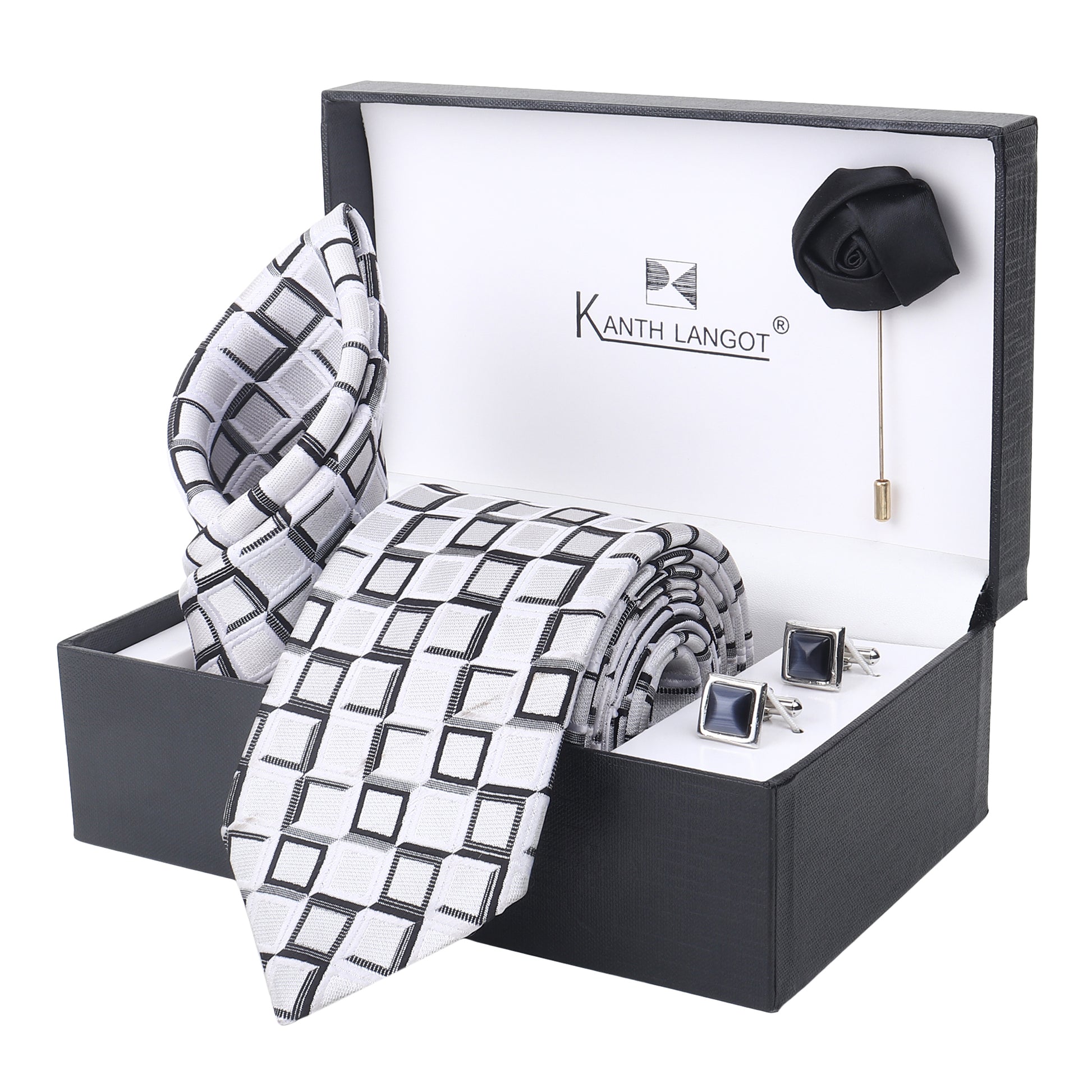 A modern classic designed for the sharp dresser, this Kanthlangot 4-piece gift set pairs confident structure with understated elegance. The refined contrast of black and white geometric grids delivers a look that’s both bold and balanced.